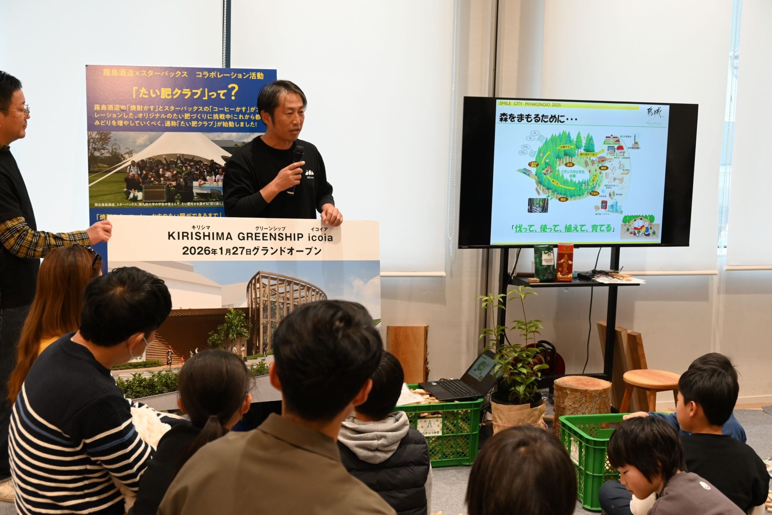 宮崎県都城市で12月20日、「みやこんじょ資源循環森林プロジェクト」の取り組みとして、一般社団法人more trees、スターバックス コーヒー ジャパン、霧島酒造、都城市が連携した「森の集い場ワークショップ」が開かれました。木材を使った小さなスツールやツリー作り、子ども向けのキッズバリスタ体験などを実施しました。