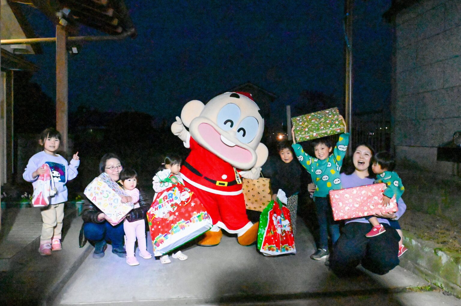 宮崎県都城市で12月23日〜25日、都城市PRキャラクター兼PR本部長の「ぼんちくん」がサンタ姿で市内の子どもがいる家庭を訪問し、クリスマスプレゼントを届けました。訪問先は事前応募から当選した9世帯で、実施は今年で10回目となります。取り組みは平成28年度に始まり、今年も当選世帯に直接届ける形で行われました。訪問時は突然の登場に子どもたちが驚く一方、プレゼントを受け取ると笑顔を見せたということです。自治体がPRキャラクターを活用して家庭訪問型の企画を継続することで、市民との接点を増やし、地域への関心を高める狙いがあるとみられます。今後も同様の交流施策を続けるかが注目されます。
