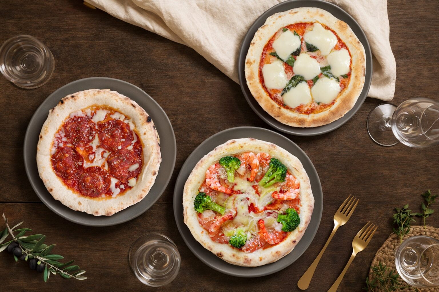 セットは3種類で、「トリプルマルゲリータ」「海老とブロッコリー」「サラミとオレガノ」を同梱。海老とブロッコリーは海老5尾をトッピングするなど、数量を明示した商品設計です。焼きたてを瞬間冷凍し、自宅ではオーブントースターで焼くだけで食べられる点を訴求します。生地は高温550度の石窯で焼き上げるとしており、外は香ばしく中はもちもちの食感を特徴に挙げています。今後は、年末年始に向けた特別セールや限定商品の展開も予定しています。