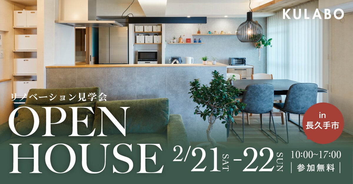 愛知県でリノベーション事業を手がけるKULABO(運営:株式会社sumarch)は、実際にリノベーションしたオーナー宅を見学できるマンションリノベーション見学会を、2026年2月21日と22日の2日間、愛知県長久手市で開催します。時間は両日10時~17時で、参加費は無料、事前予約制です。申込締切は2月20日までです。