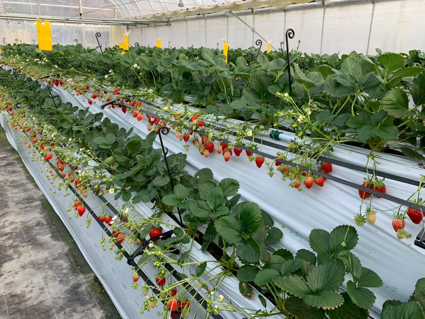 狙いは、水質改善による生育促進と病害リスク低減を通じた減農薬の循環型農業と品質向上です。いちご狩りは新品種「おいCベリー」を含む7品種で、ただし生育状況により全品種が提供できない場合があります。