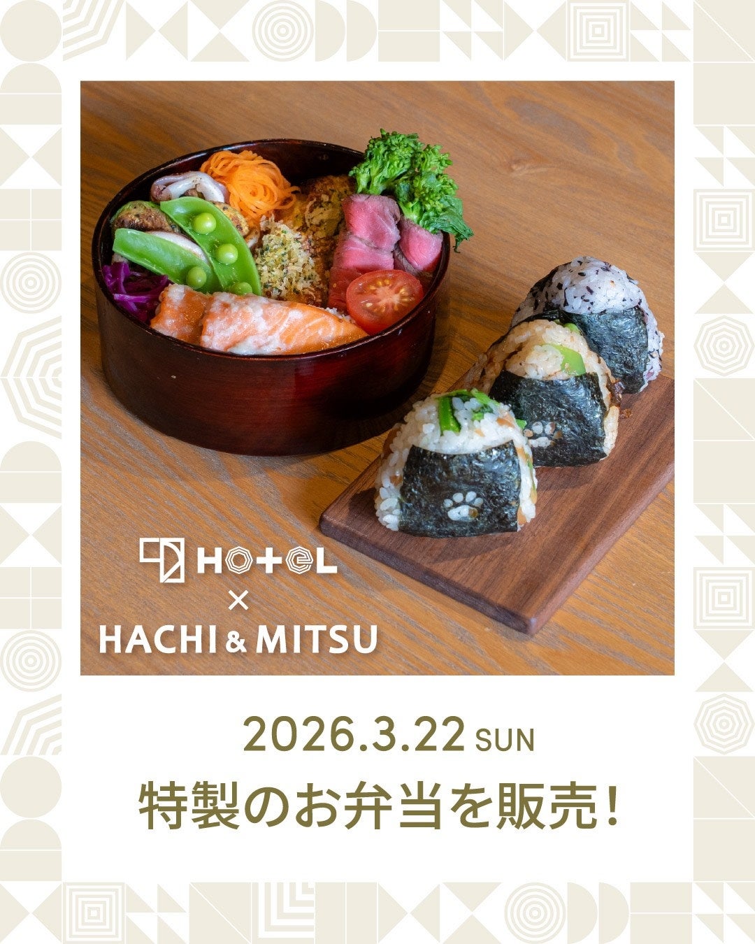 静岡市駿河区の愛犬と泊まれるホテル「1HOTEL」は、カフェレストラン「HACHI & MITSU」との特製コラボ弁当を2026年3月22日(日)に30食限定で販売します。価格は2,300円(税込)で、12:30に1HOTELフロントで受け渡します。