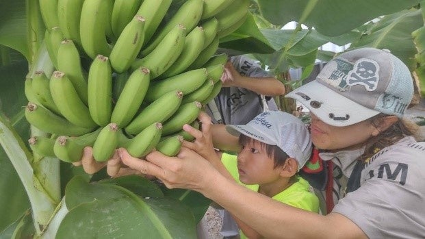 中心企画の一つが、高槻産バナナ「福バナナ」の農園見学・収穫体験です。福バナナは令和7年夏に初収穫され、農薬・化学肥料不使用で皮ごと食べられる点が特徴とされています。