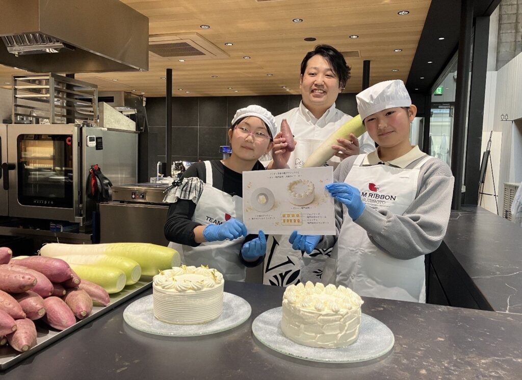 指導では「ガトー・鳴門金時」と「大根のグラニテ 柚子のジュレとコンポート」を作成し、完成品は家族に提供しました。会場のPRISM LABは総店舗面積500㎡で、うち約6割が製造スペースだといいます。