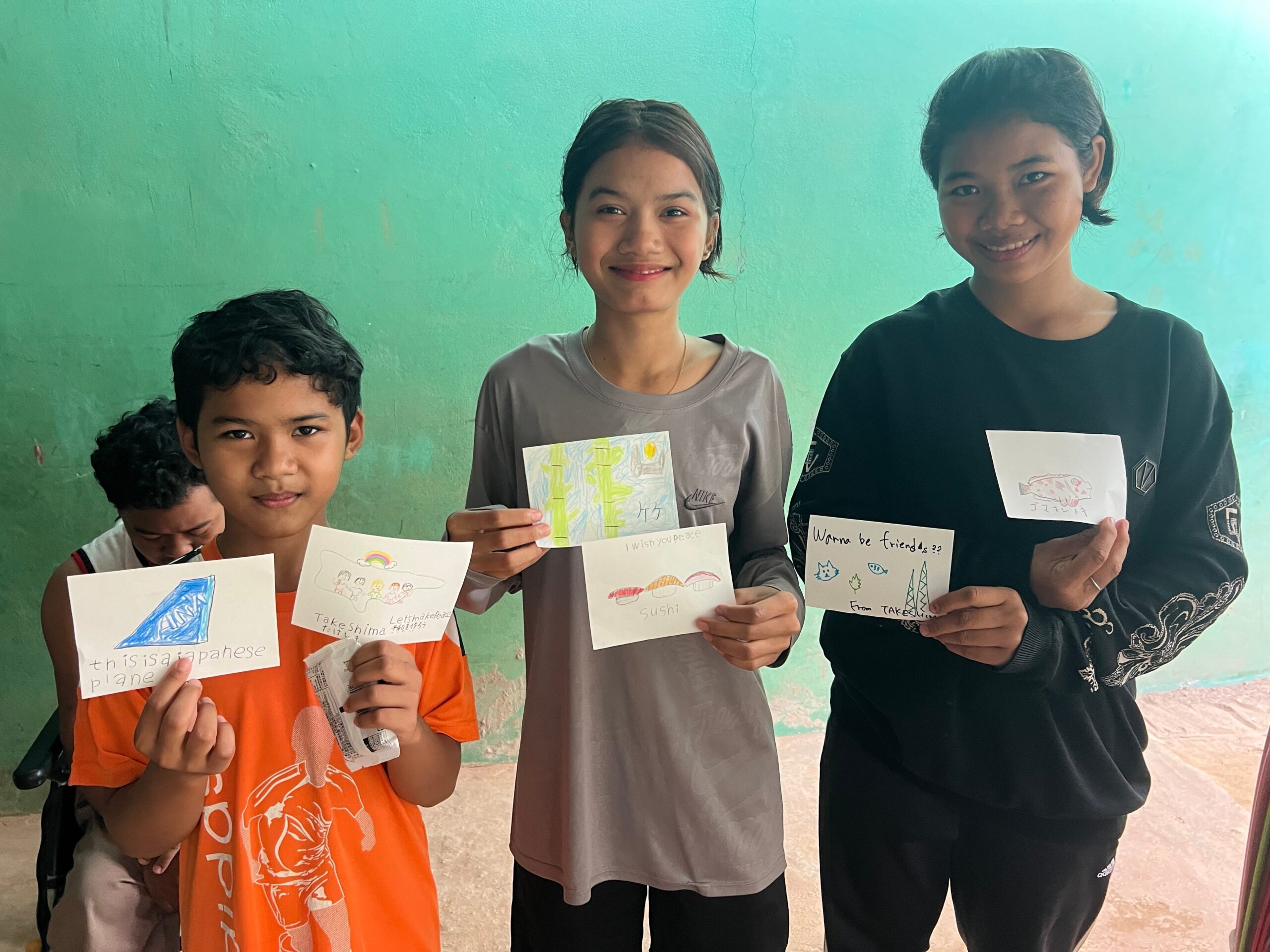 鹿児島県三島村の小中一貫校・三島竹島学園で集めた大名筍や豚味噌、ハマギ餃子と、児童生徒・地域のメッセージカードが、カンボジアの避難民支援の現場に届けられ、難民キャンプなどで炊き出しや生活支援に使われました。支援を担ったのは千葉県松戸市のNPO「なかよし学園プロジェクト」です。