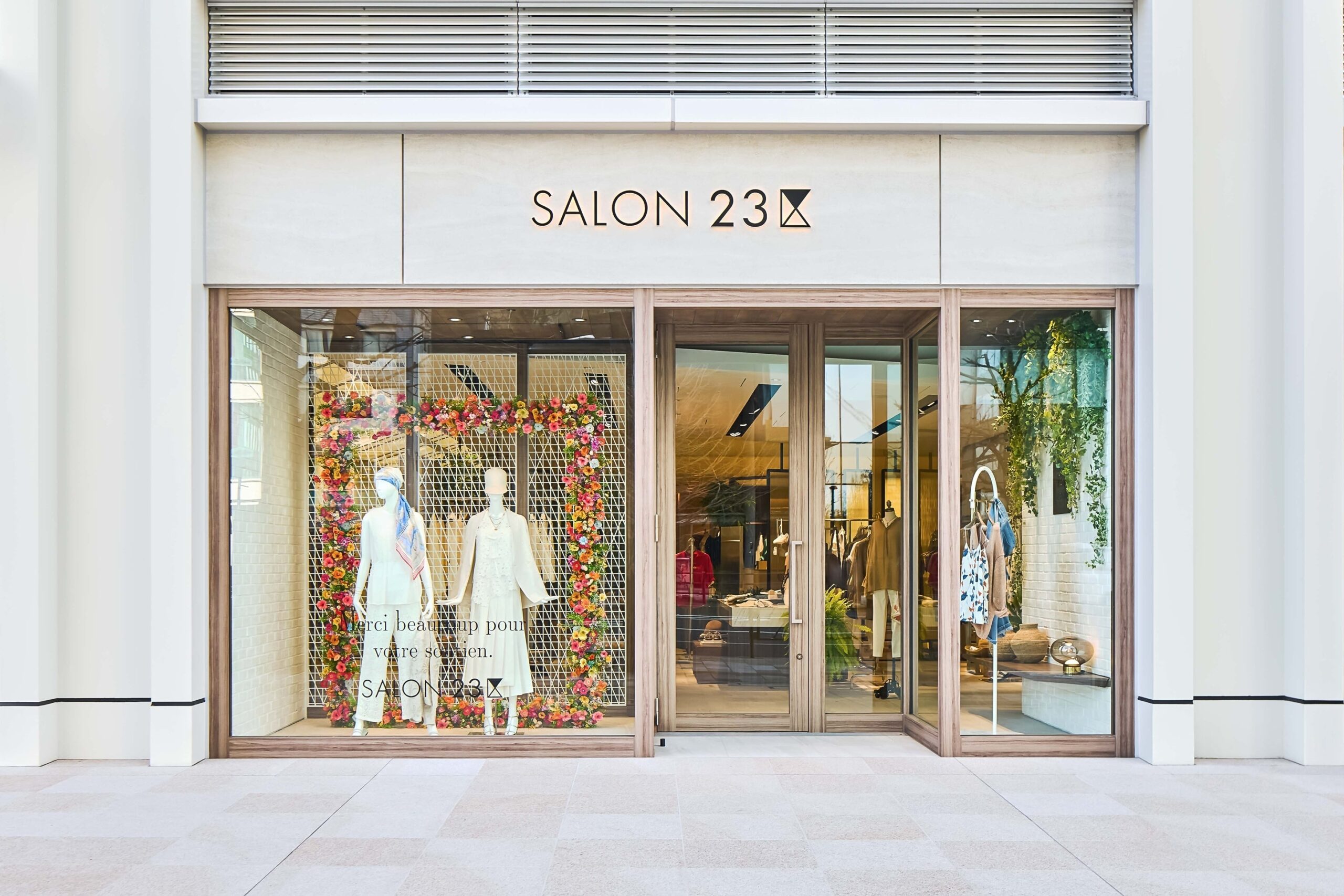 店内は“OFFICE(Morning)”“TERRACE(Daytime)”“ROOM(Evening)”の3テーマで構成し、ブランドの世界観を時間帯のシーン別に表現します。「23区」のフルラインナップに加え、国内外から厳選したバイイングアイテムを展開し、VIP ROOMも設けます。