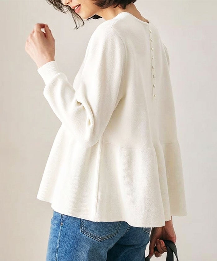 提案の軸は、縦ラインを強調するデザイン、ウエスト位置を高く見せる工夫、身体の丸みを拾いすぎない素材の3点です。対象アイテム例として、バックパールフレアニットやバンドカラーロングシアーシャツなども挙げています。