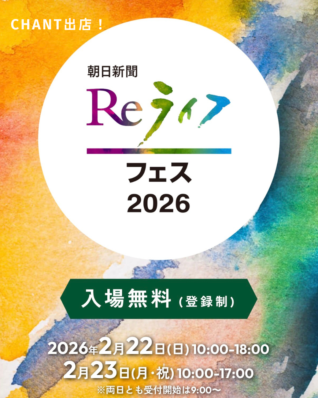 敏感肌と地球を守るエシカルコスメ CHANT、朝日新聞「Reライフフェス2026」に出展(E-05)。無料体験やプレゼント企画を実施。