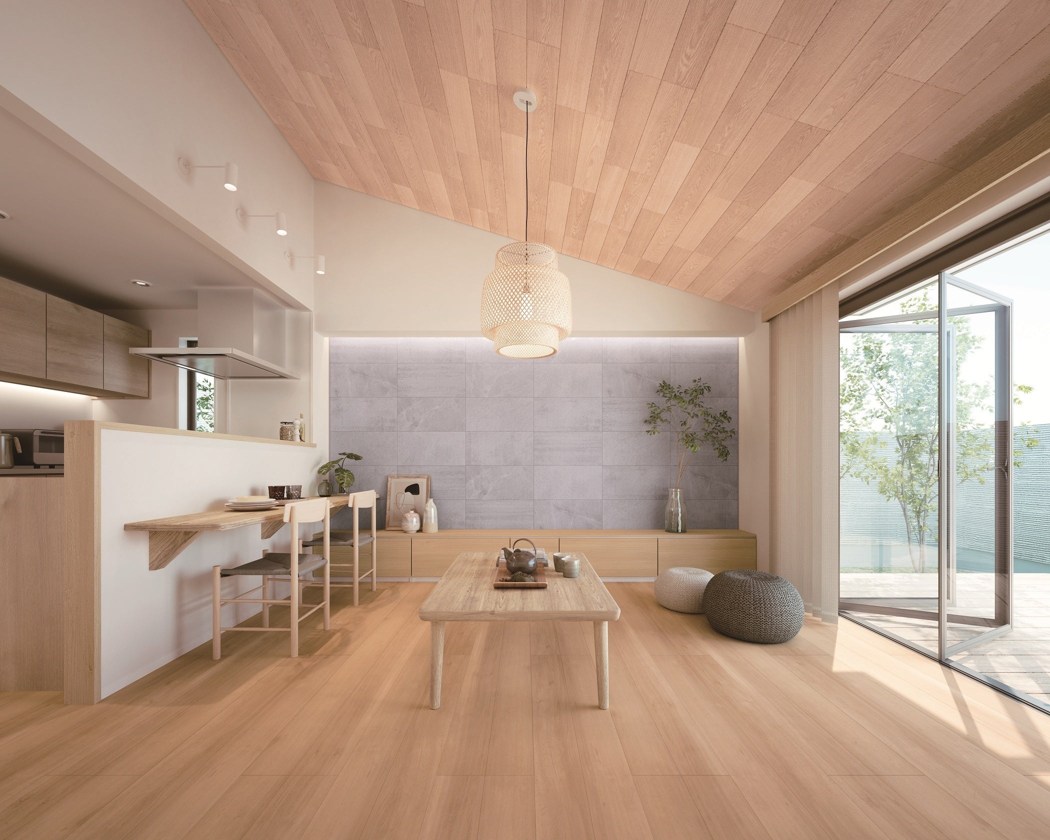 近年、天井材・壁材はホワイト系が一般的だった一方、色味や特徴的なデザインを求めるニーズが増えています。加えてランドリールーム設置や部屋干しの増加で、湿気による結露・カビ、部屋干し臭などの課題が目立ち、対策として調湿性能を持つ内装材への需要が拡大しています。