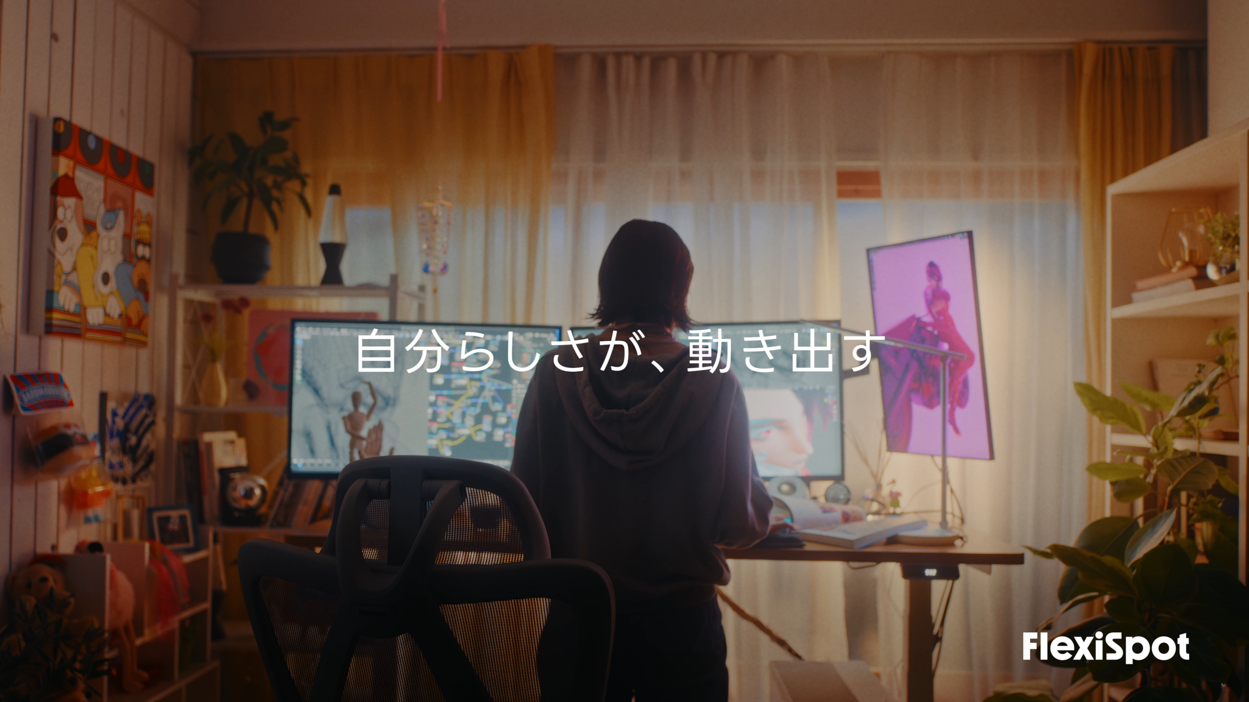 Flexispot Japan株式会社(埼玉県入間郡)は2025年12月26日、ブランドCM「自分らしさが、動き出す」マージ版をYouTubeで公開しました。映像は昇降デスク、オフィスチェア、リクライニングソファの3製品を軸に、作業環境の調整が創作の流れに影響する様子を物語形式で示します。舞台は深夜のスタジオで、男性音楽クリエイターがチェアのリクライニングで身体を休めた後に発想を得る展開から始まり、別室の女性デザイナーがソファで気分転換し、朝の光とともに昇降デスクを立ち姿勢へ切り替えて制作を再開します。同社は「New working, new living」を掲げ、リニア駆動技術(直線的な動力で昇降などを行う駆動方式)を応用した家具開発を進めると説明しており、姿勢変更による疲労軽減や集中・創造性の向上を訴求します。今後は動画を起点に、在宅・オフィス双方の作業環境改善提案を強める展開が見込まれます。