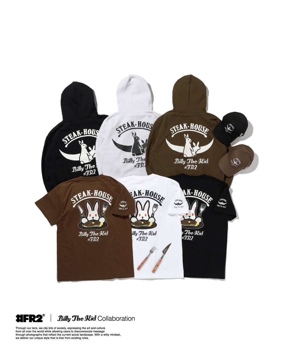 株式会社せーの(東京都渋谷区)が展開するストリートブランド「#FR2(エフアールツー)」は、大衆ステーキハウス「Billy The Kid(ビリー・ザ・キッド)」と初めてコラボレーションし、Tシャツ、フーディ、キャップ、フォーク&ナイフのカトラリーセットを2026年2月21日(土)に発売します。オンラインは同日午前11時から販売します。