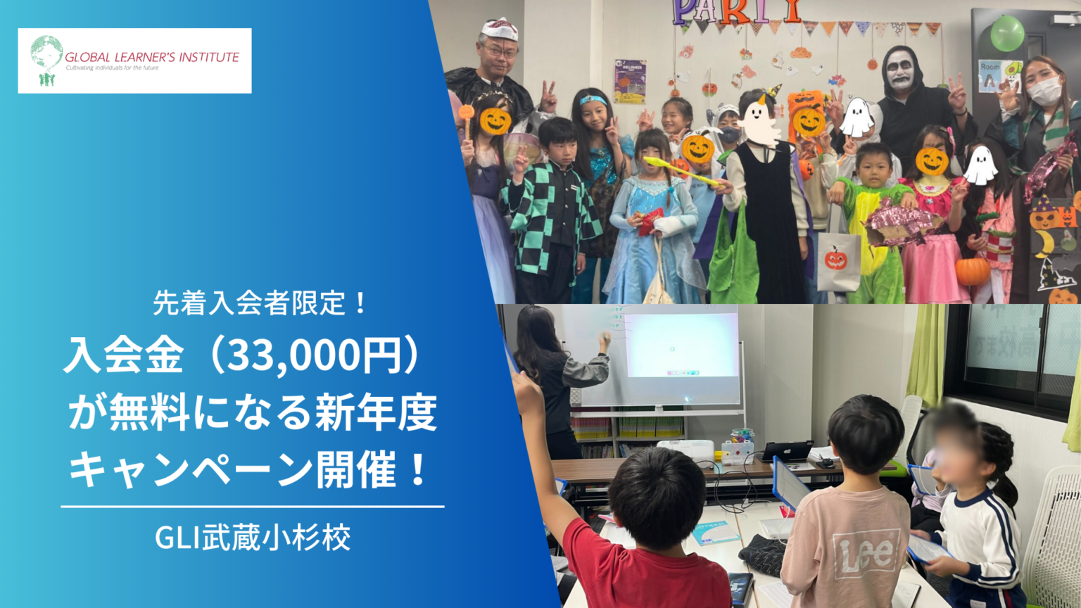 鏑木教育コンサルティング(東京都港区)は、Global Learner’s Institute(GLI)武蔵小杉校で新年度キャンペーンを始め、新規入会者の入会金を2026年3月末まで無料にします。通常は33,000円(税込)で、対象は英語4技能を伸ばしたい小・中・高校生の家庭です。