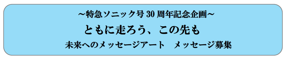 JR九州は特急「ソニック」の運行30周年に合わせ、利用者の「未来への抱負」など前向きなメッセージを集めてアート作品として展示する企画を始めます。募集期間は2026年1月15日から2月14日までの31日間で、戸畑・黒崎・折尾の各駅改札内で無料で受け付けます。集まったメッセージは作品の一部として制作し、展示は2026年2月下旬から3月下旬にかけて折尾駅改札内で行う予定です。誰でも参加できますが、個人情報が特定できる内容や公序良俗に反する内容は不可です。記入場所と展示場所はいずれも改札内のため、乗車券や定期券がない場合は入場券が必要で、カードは返却されません。ソニックは2025年4月20日に運行30周年を迎えており、節目を機に沿線で参加型企画を設けて利用者との接点を広げます。展示期間は変更となる場合があり、今後は募集状況や展示内容の詳細が示される見通しです。