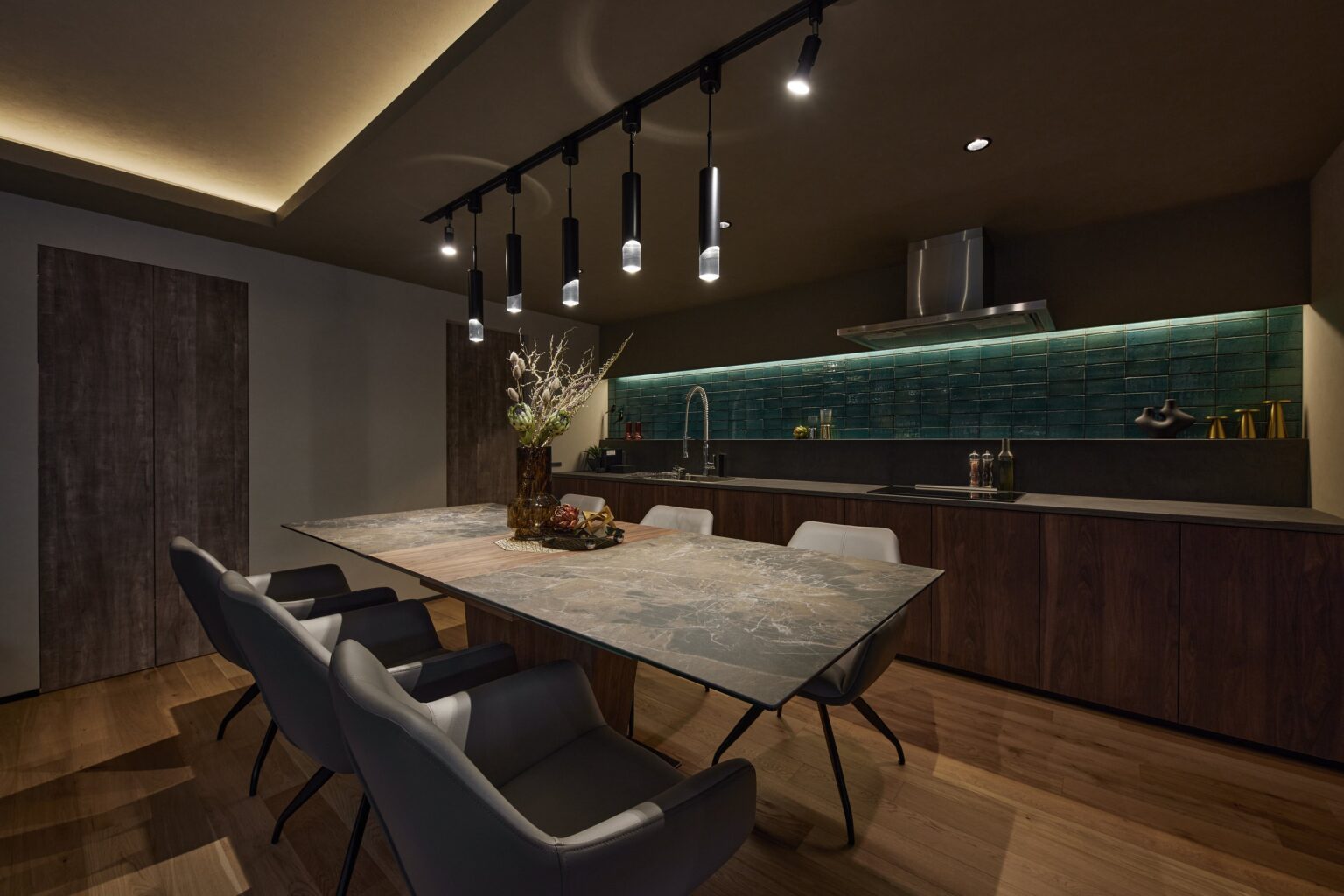 施設は3階建てで、1組限定の貸切スタイルが特徴です。リビングダイニングを中心に、洋室3室(各室セミダブルベッド2台)と和室1室(シングル布団3組)を備え、グループ旅行や三世代家族旅行など大人数での滞在を想定しています。バスエリアには埋め込み型バスタブと2台のシャワー、洗面スペースには2人同時に使えるダブルボウルを設置し、複数人での利用時の利便性を高めています。