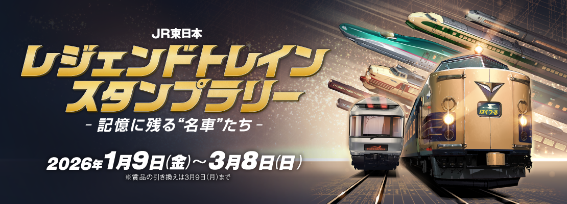 JR東日本は2026年1月9日〜3月8日、「JR東日本 レジェンドトレインスタンプラリー ー記憶に残る“名車”たちー」を実施します。首都圏30駅(JR東日本29駅+東京モノレール1駅)などにスタンプを設置し、まず10駅周遊コース達成後に30駅周遊などへ挑戦でき、30駅達成者は抽選で計600人に「レプリカミニヘッドマーク」などが当たります。対象はミニ周遊10駅(熱海・伊東、甲府・韮崎など)と、青森・仙台・秋田・山形・新潟・長野のワイド6駅も用意され、参加費は無料ですが移動のきっぷやSuica等が必要です。期間中はNewDays等の賞品引換箇所でオリジナル鉄道グッズも販売し、ウォーターズ竹芝や鉄道博物館で特別スタンプ設置、駅ビル等で買い物特典も行います。複数エリアをまたぐ設計により、鉄道ファンだけでなく周遊需要の掘り起こしが進むかが焦点です。