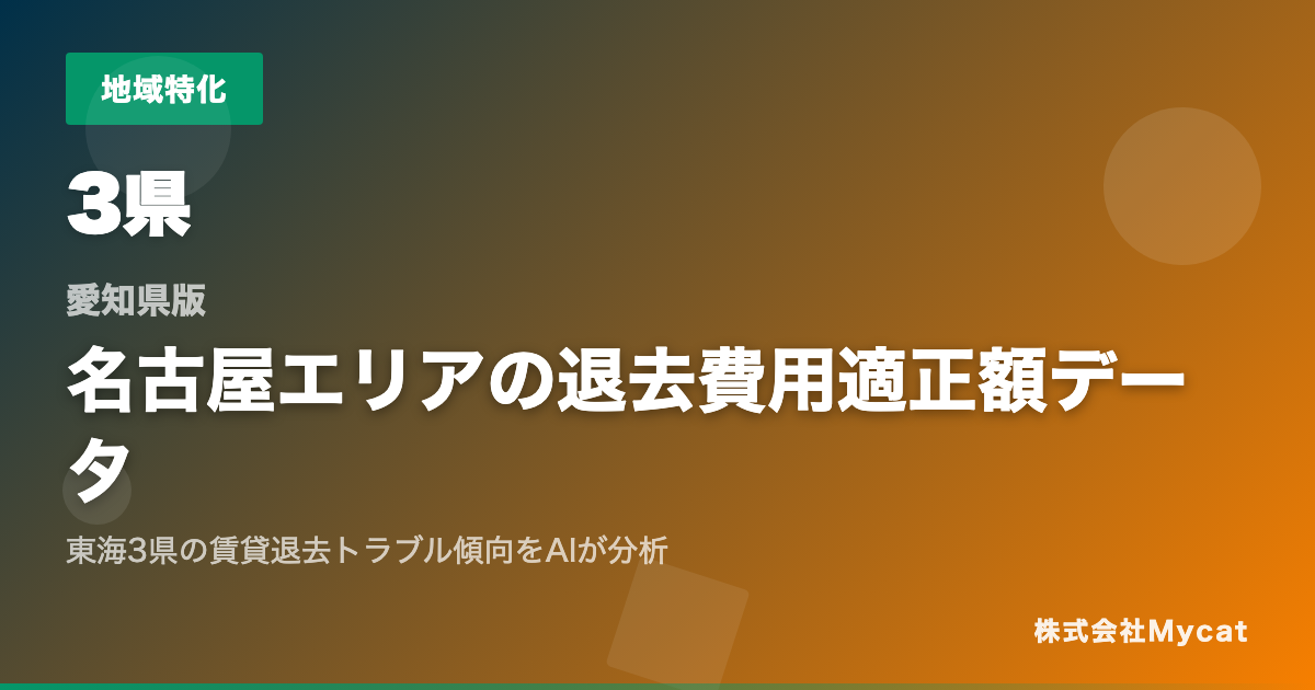 株式会社Mycat(東京都目黒区三田2丁目7番22号)は2026年3月25日、賃貸の退去費用・原状回復費用に関する「退去費用 払いすぎ診断」愛知県版の適正額データレポートをPDFで無料公開した。メールアドレス登録後、即時ダウンロードできる。