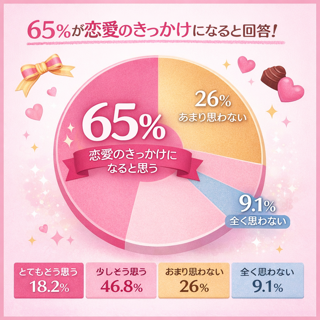 大人世代向けマッチングアプリ「R50Time」を運営するソーシャルサービス(東京都千代田区)は2月3日、50代以上の男女を対象に実施したバレンタインデー・ホワイトデーの意識調査結果を公表しました。「恋愛のきっかけになる」との回答は65%以上で、もらって嬉しいものは「一緒に過ごす時間」が41.6%で最多でした。調査は2026年1月にアプリ内アンケートで行いました。