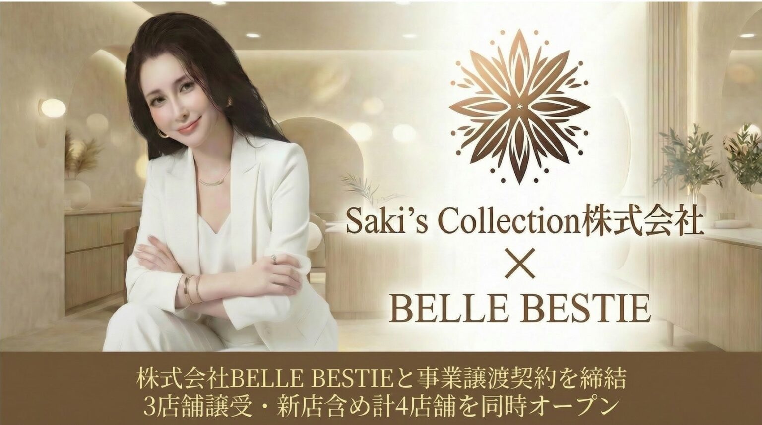 Saki’s Collectionは、まつげ・眉毛など目元ケアのアイビューティー事業に新規参入し、2026年1月4日に4店舗を一斉開業します。内訳は事業譲渡で取得した3店舗(八王子1、町田2)と、麻布十番の1店舗をリニューアルした拠点です。痩身エステやフェイシャル、フェムケアに続き、提供領域を拡大します。