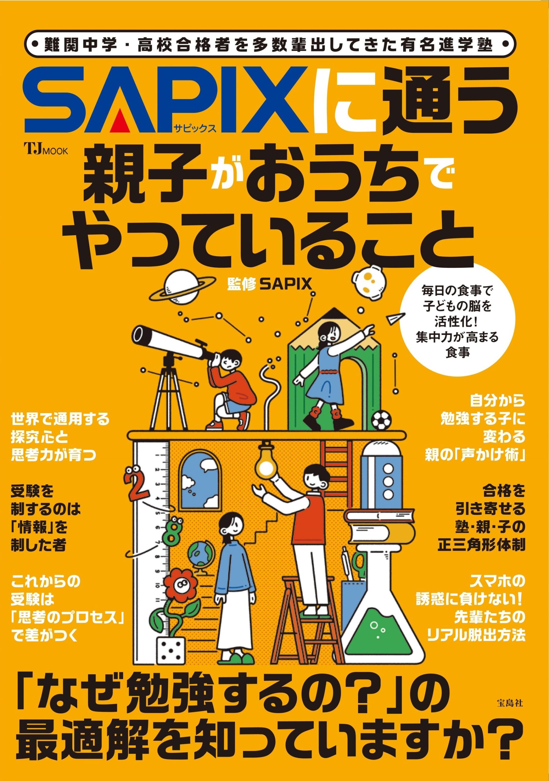 進学塾SAPIXを運営する日本入試センター(東京都渋谷区)が監修したTJMOOK『SAPIXに通う親子がおうちでやっていること』が、2026年3月30日に宝島社から発売されます。A4判・96ページで、定価は1540円、ISBNは978-4-299-07691-5です。