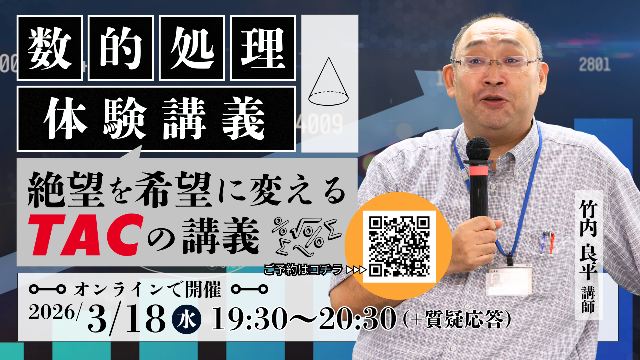 【TAC公務員】3/18(水)「数的処理 体験講義~絶望を希望に変えるTACの講義~」をオンラインで開催!