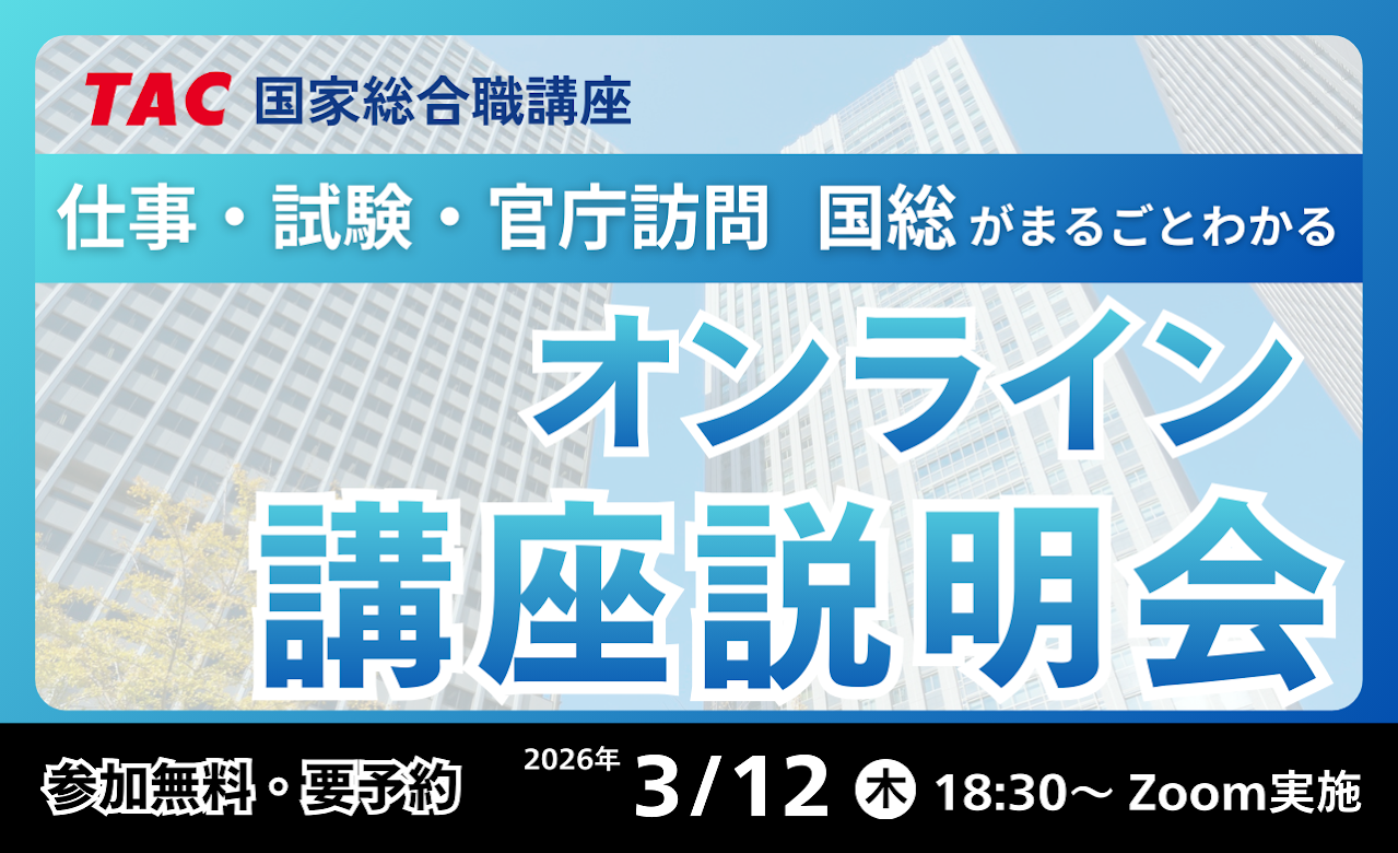 【資格の学校TAC】国家総合職(官僚)を目指すなら今!無料オンライン講座説明会「新試験制度にもバッチリ対応!国総がまるごとわかる講座説明会」3月12日(木)開催