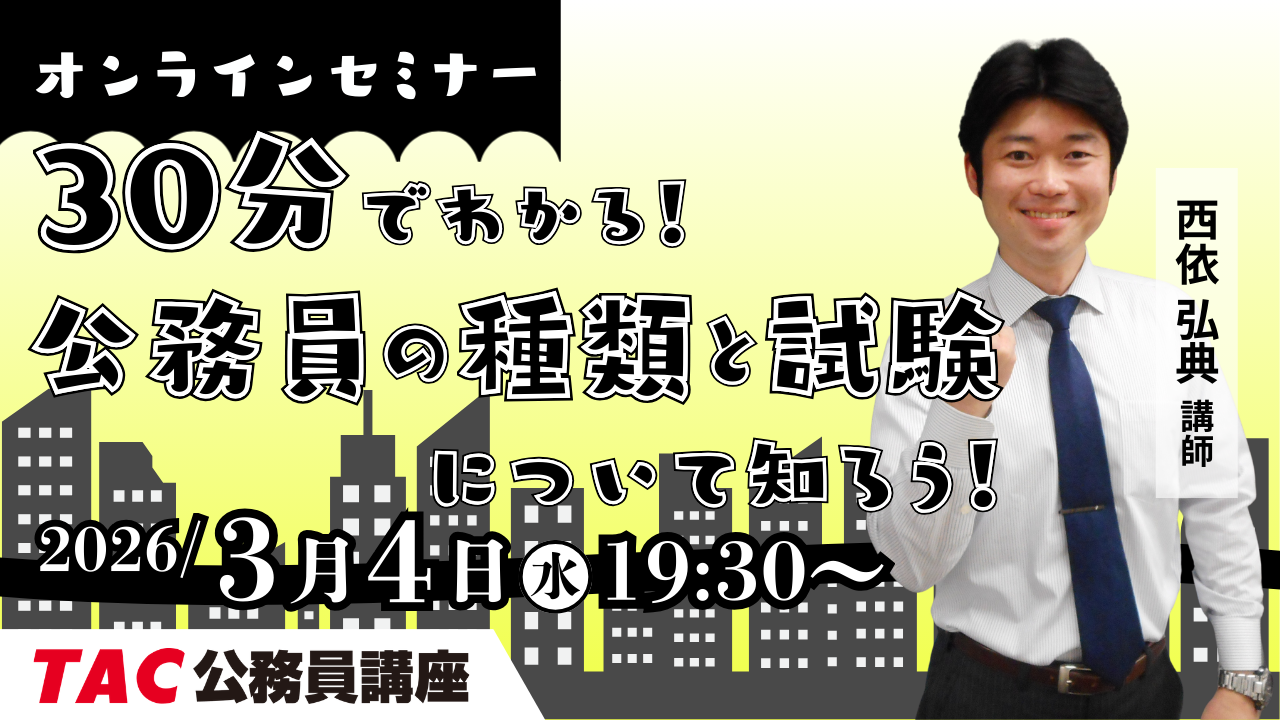 資格取得支援のTAC(東京都千代田区)は2026年3月4日19時30分から20時まで、公務員試験を検討する人向けのオンラインイベント「30分でわかる!公務員の種類と試験について知ろう!」をZoomで開催します。参加費は無料で、開催時間は30分です。