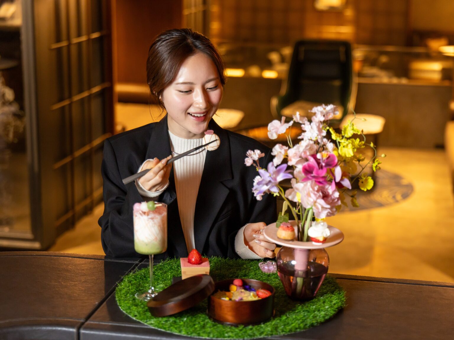 企画名は「HANA Me」。桜・抹茶・ベリーをテーマにしたミニスイーツを1人1セットで用意し、アートフラワーブーケの演出で“館内で桜を楽しむ”体験を打ち出します。混雑や寒さを避け、ホテル内でゆっくり過ごしたい層を想定しています。