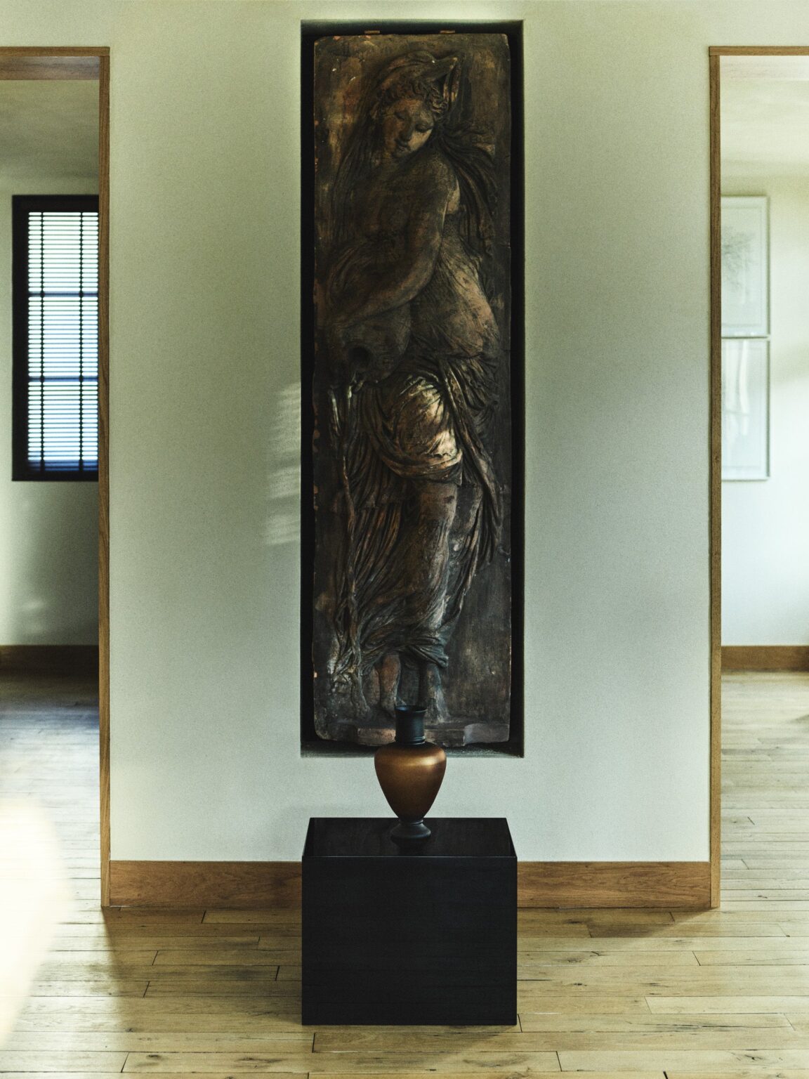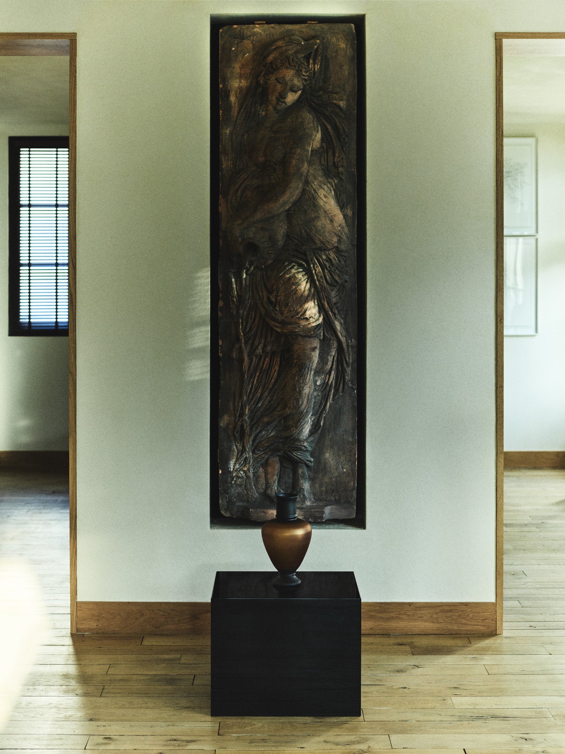 同コレクションは器、ランプ、燭台、トレー、箱に加え、一点物の彫刻で構成します。真鍮や銅、オニキス、手吹きガラス、銀メッキ、手作業のラッカーなど素材と仕上げの対比を用い、シンプルさと永続性、丁寧に作られたオブジェが生む感情の共鳴を狙います。