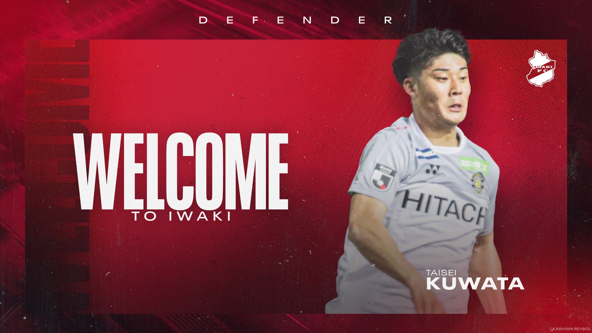 いわきFCは、柏レイソル所属のDF桒田大誠選手(23)が期限付き移籍で加入すると発表しました。移籍期間は2026年6月30日までで、契約条件により移籍期間中は柏レイソルと対戦する全ての公式戦に出場できません。ポジションはDFで、身長173cm、体重67kgです。