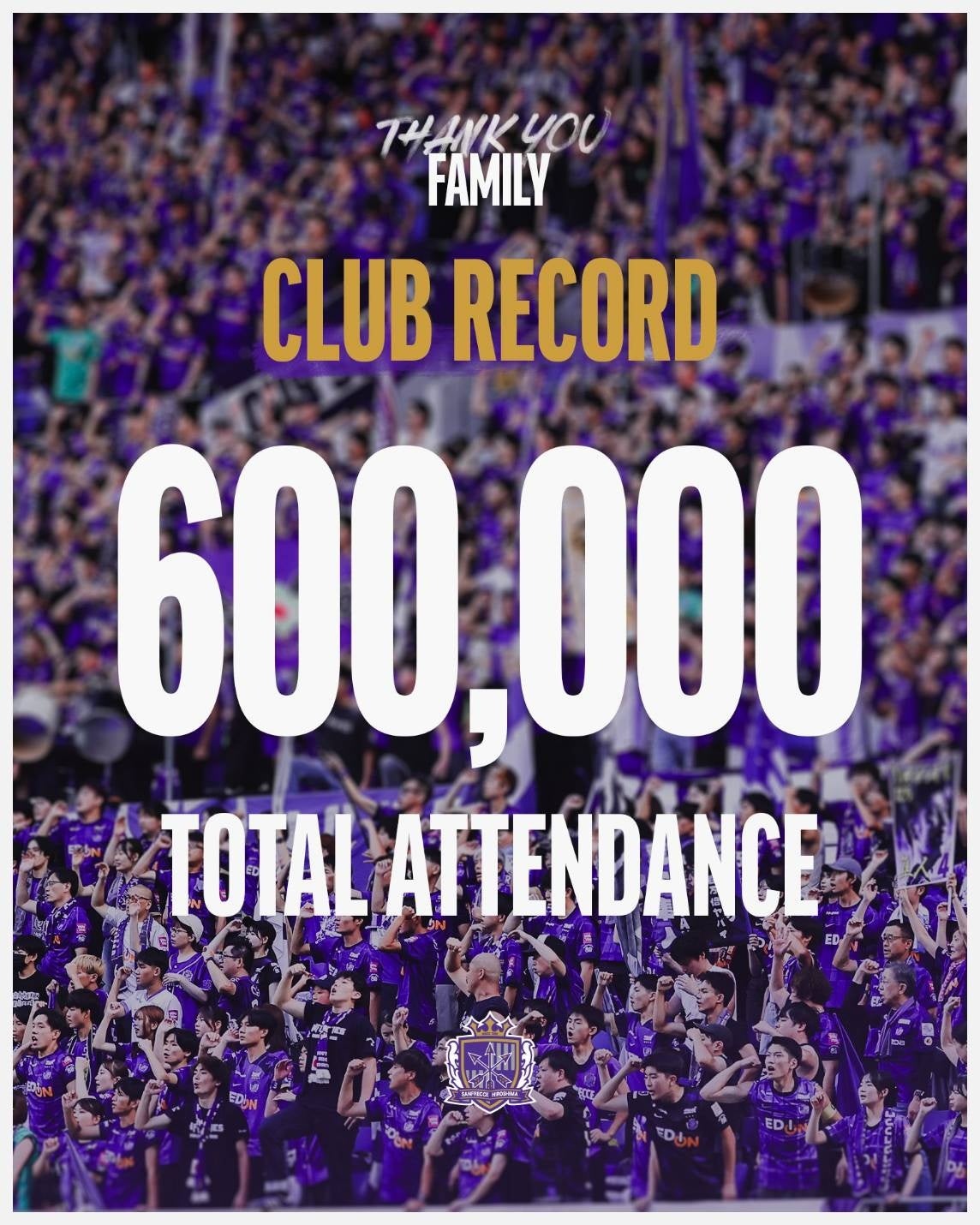 サンフレッチェ広島は、エディオンピースウイング広島の開業2年目となった2025年の実績データ「2025 SEASON REVIEW」と、特別大会「明治安田J1百年構想リーグ」で着用するユニフォームを公開した。トップチームの主催公式戦(リーグ、ルヴァン杯、ACL)の総入場者数は602,944人で、前年比+48,734人となった。J1リーグの総来場者は486,116人、1試合平均は25,585人(前年差▲24人)だった。