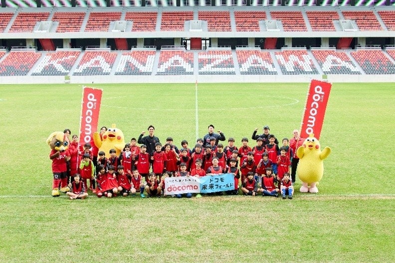 NTTドコモは11月22日、金沢ゴーゴーカレースタジアムで体験イベント「ドコモ未来フィールド ツエーゲン金沢」を開き、小学4〜6年生と保護者40組80人が参加しました。ツエーゲン金沢のOB廣井友信さんと、現役の宮崎海冬選手、久保賢也選手が特別ゲストとして登場し、サッカー教室や講話を通じてプロの現場に触れる機会を提供しました。