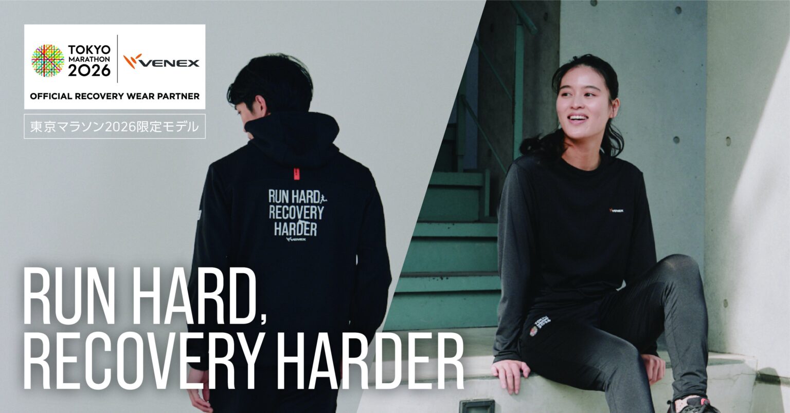 神奈川県厚木市のベネクスは2月6日、東京マラソン2026の開催を記念した限定デザインのリカバリーウェア全8型と、新商品「リカバリーオープントゥレッグ」(限定デザイン)、限定デザインの「リカバリークロス+」の先行予約販売をVENEX公式オンラインストアで始めました。発送は2月12日から順次予定です。