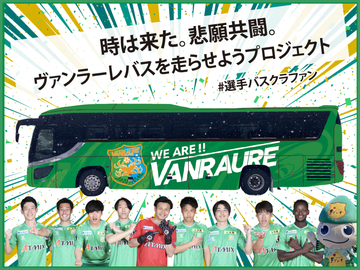 企画は「時は来た。悲願共闘。ヴァンラーレバスを走らせようプロジェクト #選手バスクラファン」として、2026年2月20日から支援募集を開始しています。資金はラッピングバス制作費300万円のほか、バス運行・維持費用として600万~700万円を見込んでいます。