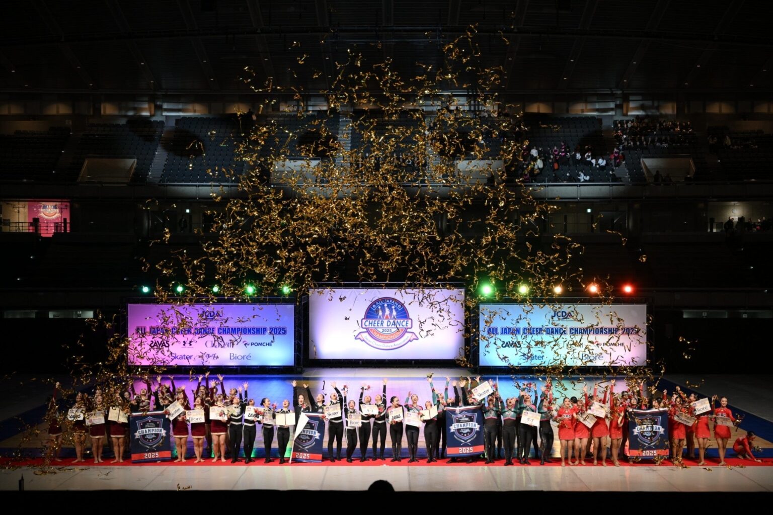 東京体育館(東京都渋谷区)で11月29日〜12月1日に開催されたALL JAPAN CHEER DANCE CHAMPIONSHIP 2025で、全編成のチャンピオンが決まりました。参加は897チーム・7927人、決勝は367チーム・3658人でした。