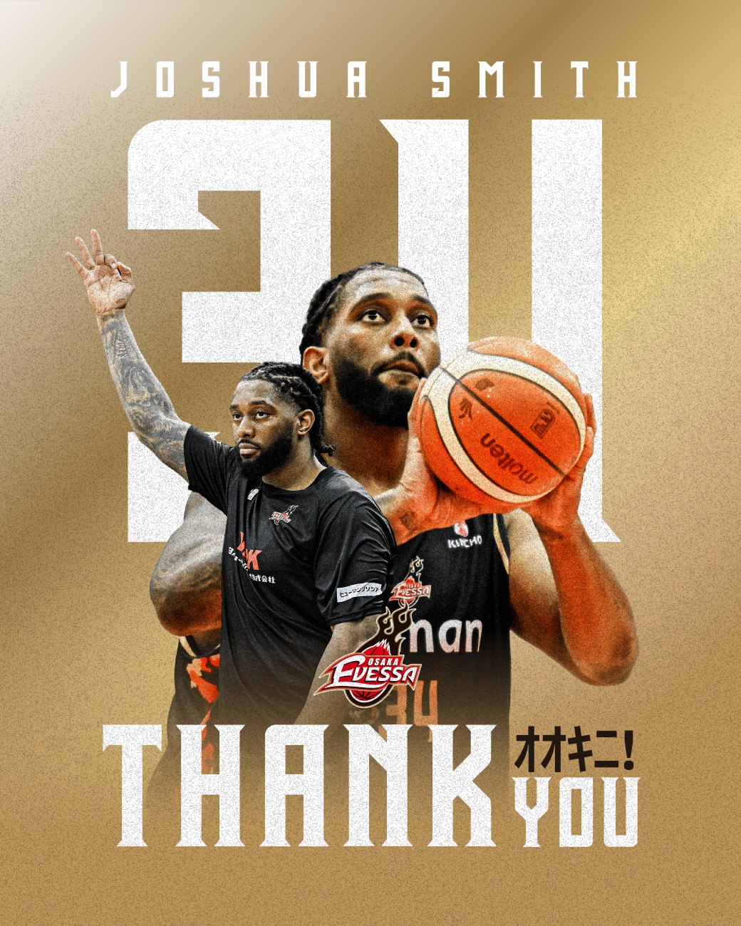 大阪エヴェッサは2026年1月23日、りそなグループ B.LEAGUE 2025-26シーズンにおけるジョシュア・スミス選手(背番号34)との選手契約を双方合意の上で解除し、同日15時にB.LEAGUEの自由交渉選手リストへ公示すると発表しました。