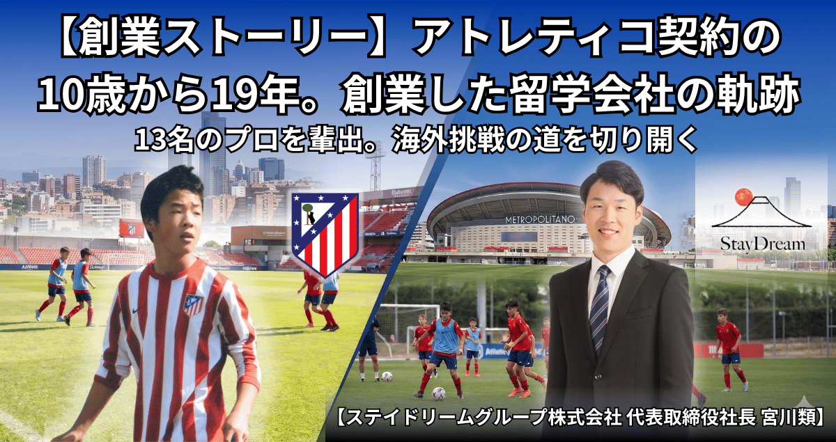海外サッカー留学・トライアウト支援を手がけるステイドリームグループ(東京都新宿区)は2026年3月20日、代表の宮川類氏(1997年1月20日生まれ)が創業の経緯と支援実績を公表した。支援先はスペイン、ドイツ、オーストラリア、韓国の4カ国で、プロ契約に至った選手は計13人、このうち女子選手は9人としている。