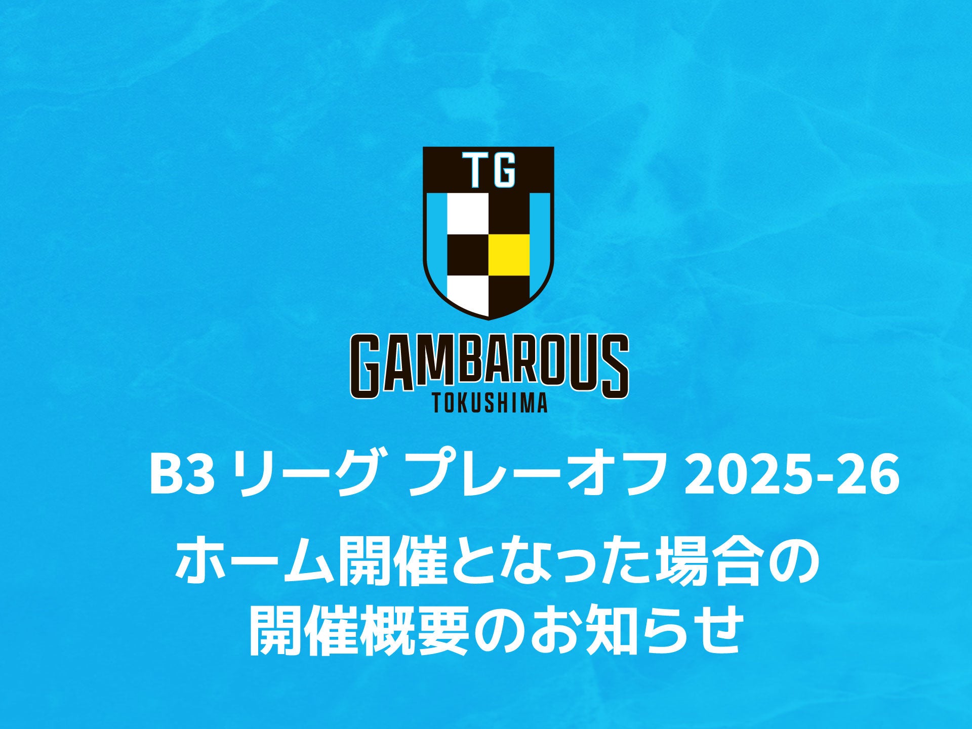 男子プロバスケットボールB3リーグの徳島ガンバロウズを運営するがんばろう徳島は3月10日、B3リーグ プレーオフ2025-26がホーム開催となった場合の試合日程と会場を示しました。準々決勝は4月24日19時、25日15時、26日14時に、とくぎんトモニアリーナで実施予定です。