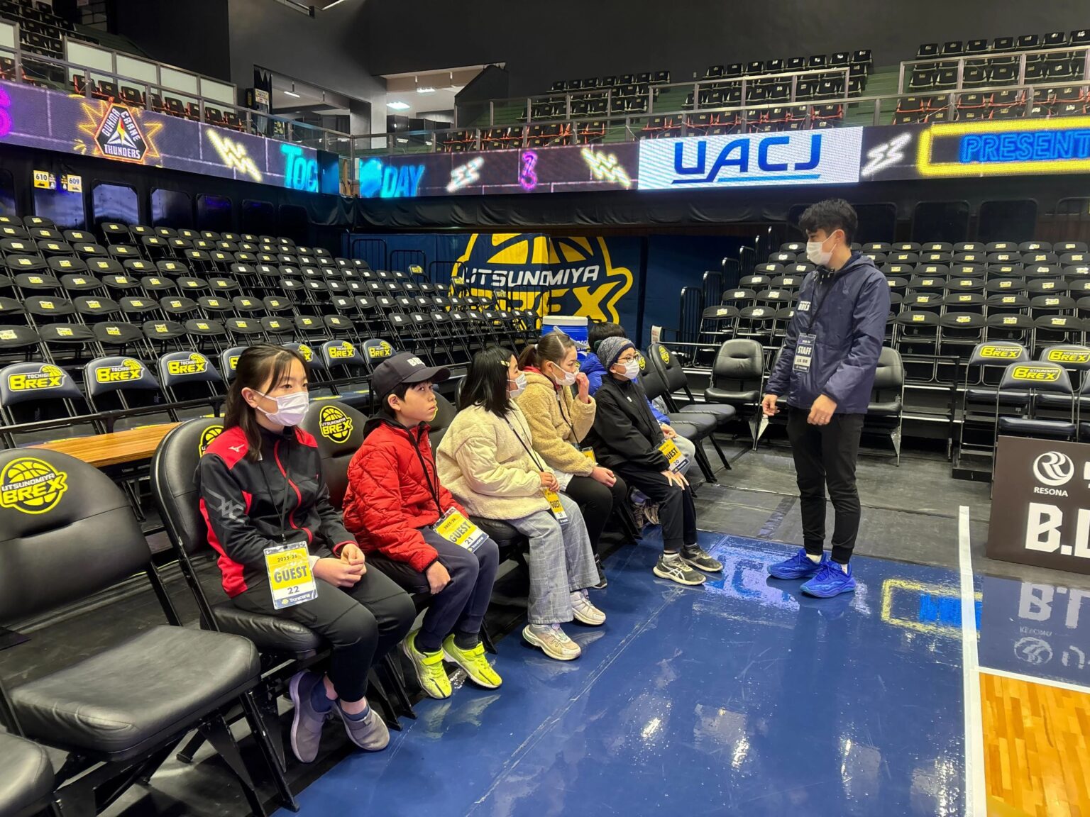 栃木ブレックスは1月31日、ブレックスアリーナ宇都宮での群馬クレインサンダーズ戦の試合前に、宇都宮市内の小学4〜6年生を対象としたアリーナ見学と職業体験を実施しました。参加したのは応募者から選ばれた6名です。