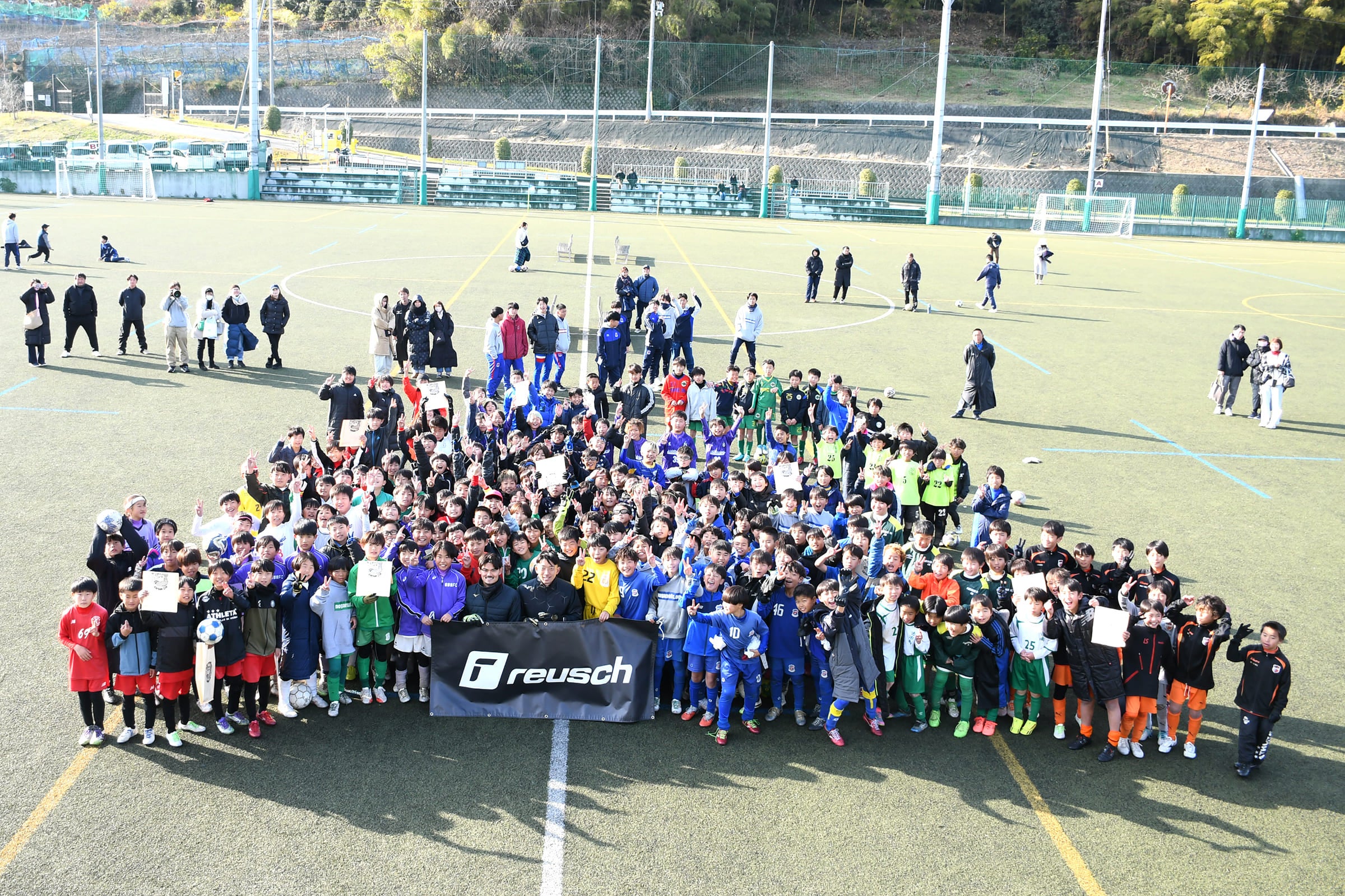 ヴィッセル神戸の権田修一選手とセレッソ大阪の福井光輝選手が、大阪府河内長野市のコノミヤ・スペランツァ球技場で小学5年生を対象にGKクリニックを行いました。主催側によると、福井選手が着用予定のreusch(ロイシュ)新仕様「Duoパーム」搭載モデルは、2025年12月から日本で本格展開します。