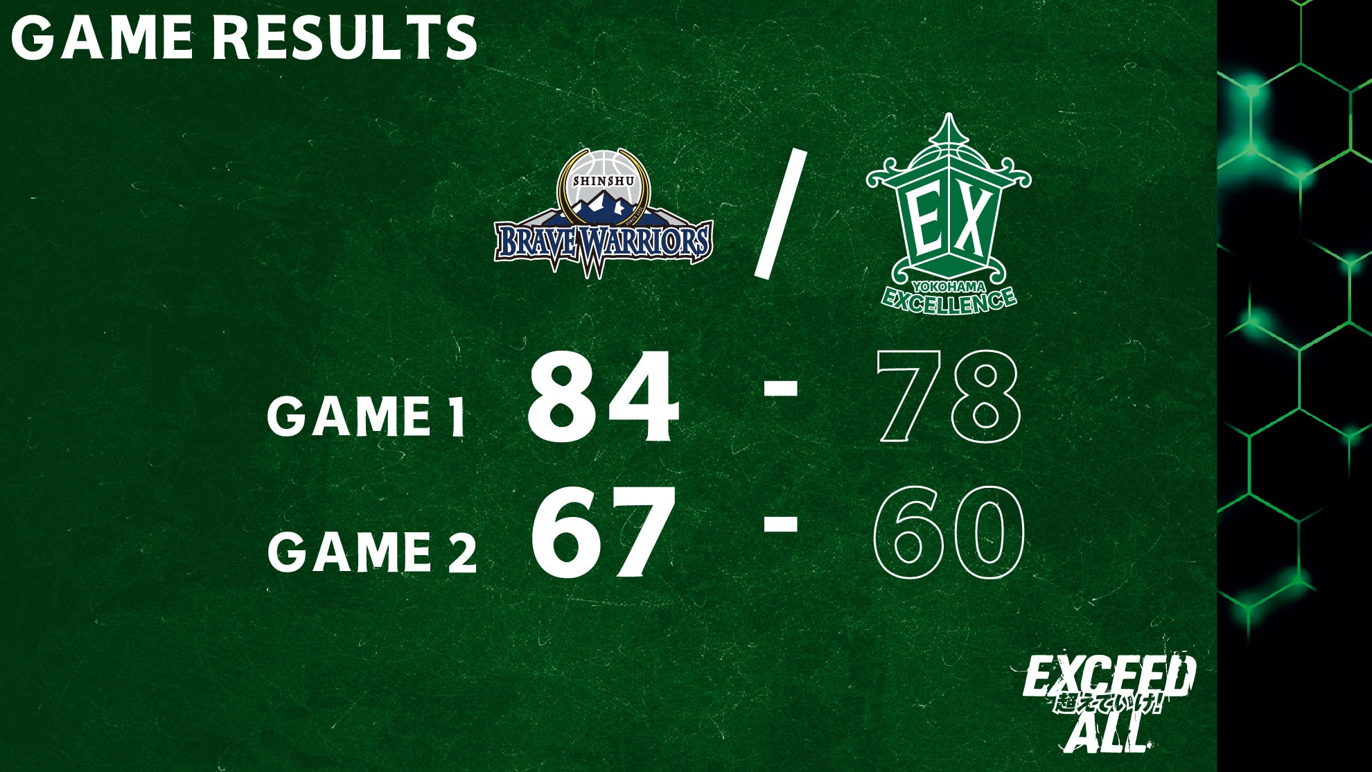 B2第18節で横浜エクセレンスはアウェーの信州ブレイブウォリアーズと対戦し、Game1を78-84、Game2を60-67で落としました。これにより、クラブ史上最長だったB2での14連勝は止まりました。