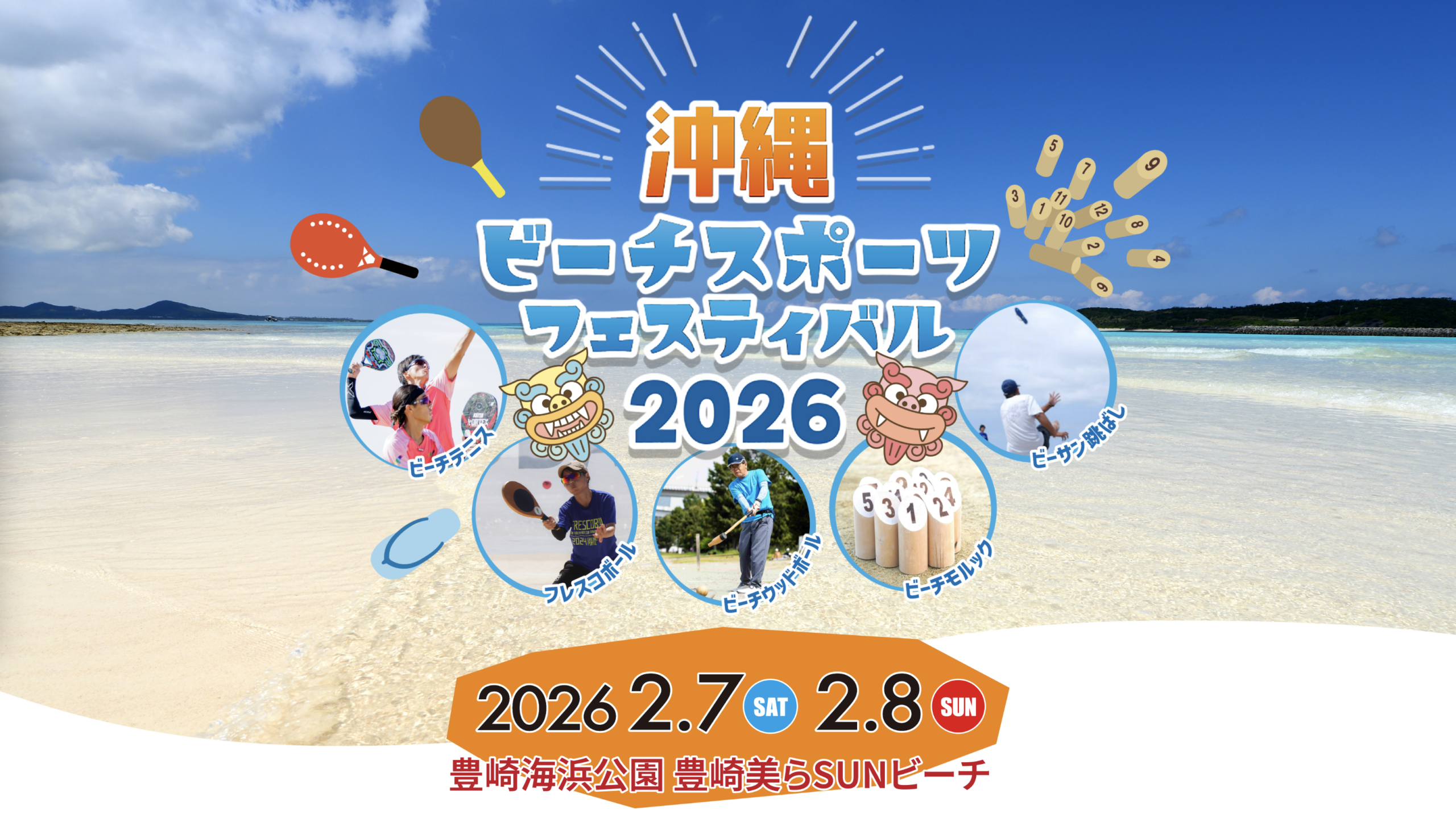 沖縄県豊見城市の美らSUNビーチで2026年2月7日と8日、「沖縄ビーチスポーツフェスティバル2026」が開かれます。フレスコボール、ビーチテニス、ビーチモルックなど複数競技を“全部”体験・観戦でき、観戦と体験参加は無料です。大会の特設HPも新たに公開されました。主催は実行委員会で、日本フレスコボール協会など3団体が運営に関わります。会場では3競技に挑戦して「三代目ビーチスポーツ王者」を決める仕組みで、競技を横断して楽しめる点が特徴です。アンバサダーは沖縄の人気芸人マルキヨビルが2年連続で担当し、公式MCは俳優の馬場奈々瀬さんが務めます。沖縄県スポーツイベント支援事業として実施され、冬でもビーチスポーツを楽しむ機会として定着するかが注目されます。