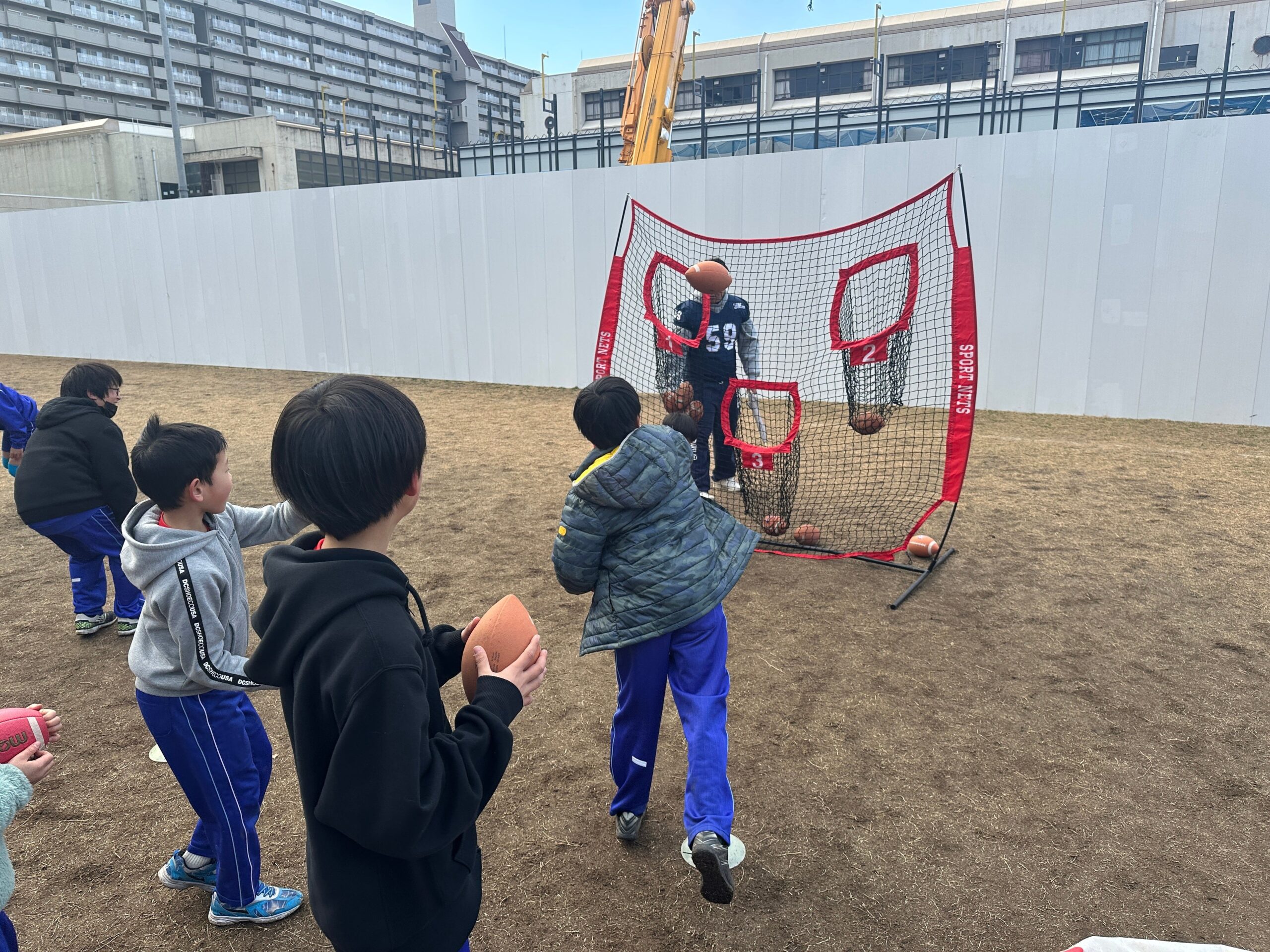 参加者:小学生 約30名、神戸学院大学アメリカンフットボール部 約20名