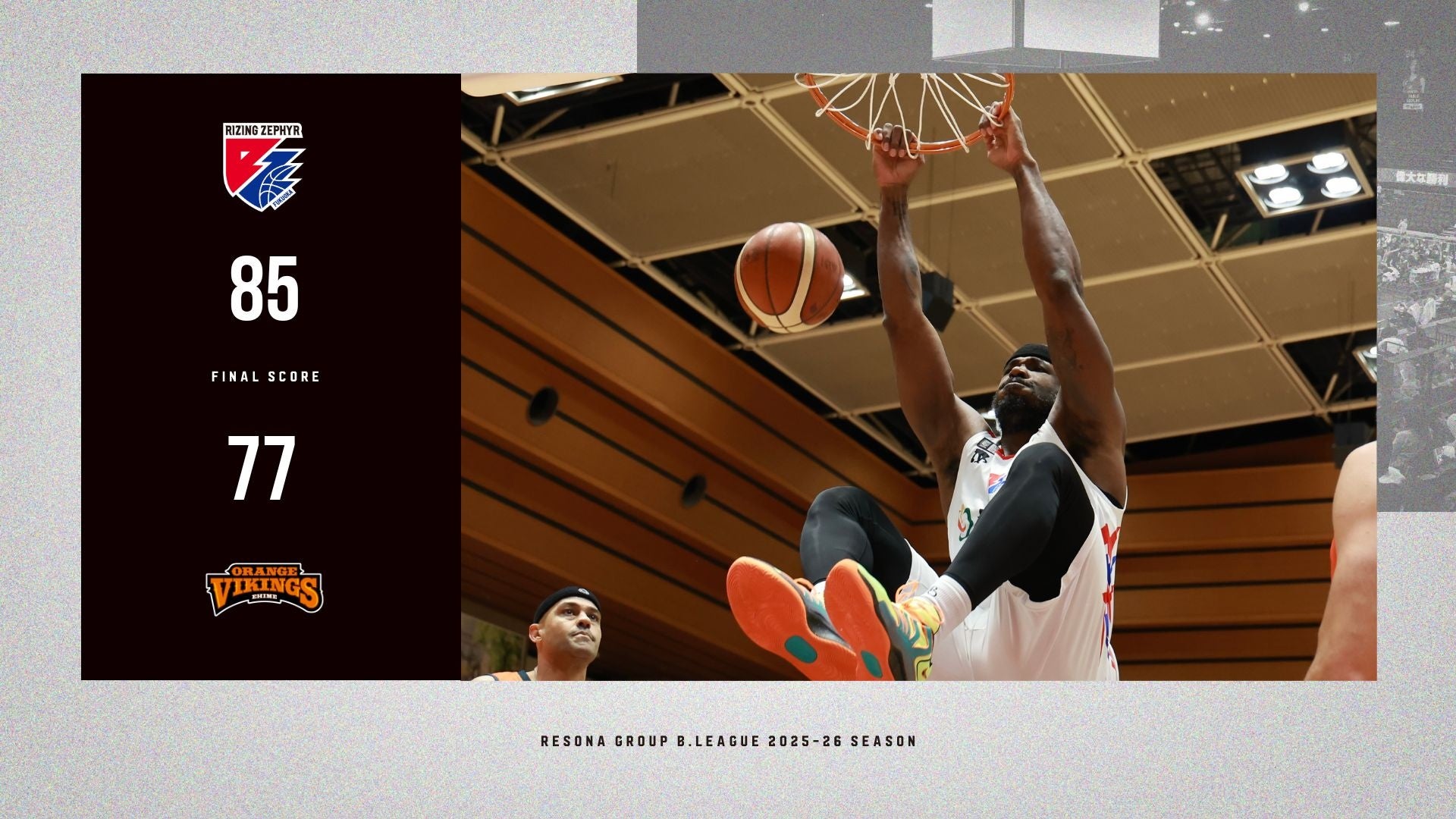 B.LEAGUE 2025-26シーズンの「ライジングゼファーフクオカ vs. 愛媛オレンジバイキングス」は1月30日、松山市総合コミュニティセンターアリーナで行われ、福岡が85-77で勝利しました。クォーター別は1Q21-21、2Q21-18、3Q22-15、4Q21-23で、福岡はアウェーでの連敗を止めました。