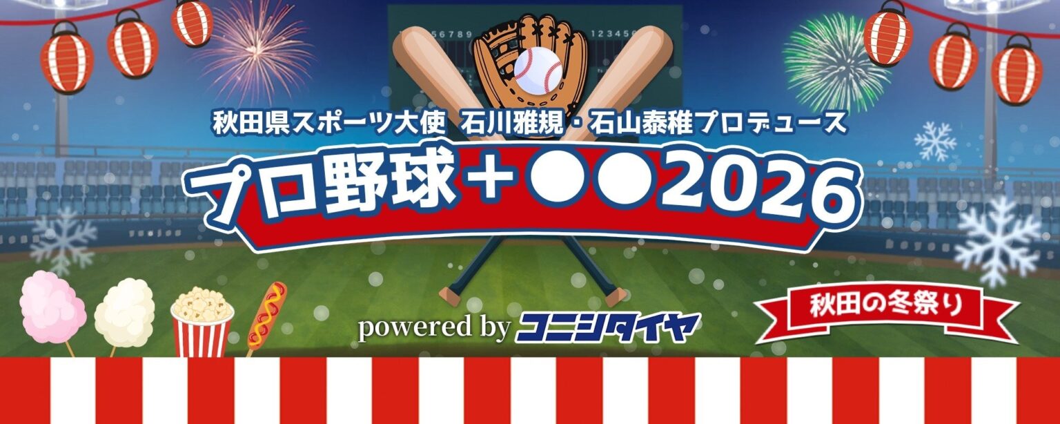 秋田県スポーツ大使の石川雅規投手・石山泰稚投手(東京ヤクルトスワローズ)が、プロ野球体験と縁日を組み合わせたイベント「プロ野球+〇〇2026」を2026年1月4日12時〜16時にCNAアリーナ★あきた(秋田市立体育館)で開きます。参加費は無料で、募集人数は500人です。後援は秋田県と秋田市です。内容はキャッチボールのデモンストレーションや指導、タイヤ転がしゲームなどの「選手と体験コンテンツ」と、ストラックアウト、射的、ヨーヨーすくい、飲食など冬の秋田で縁日を再現する企画で構成します。参加選手は両投手に加え、石井大智投手(阪神タイガース)も予定されています。主催者側は、秋田での外出機会が限られた子どもたちが遊べる場を1日限定でも確保したいとしており、プロ野球ファン以外も含め幅広い来場を見込みます。先着制の体験枠を含むため、今後は応募状況に応じた運営導線や安全管理が焦点になりそうです。