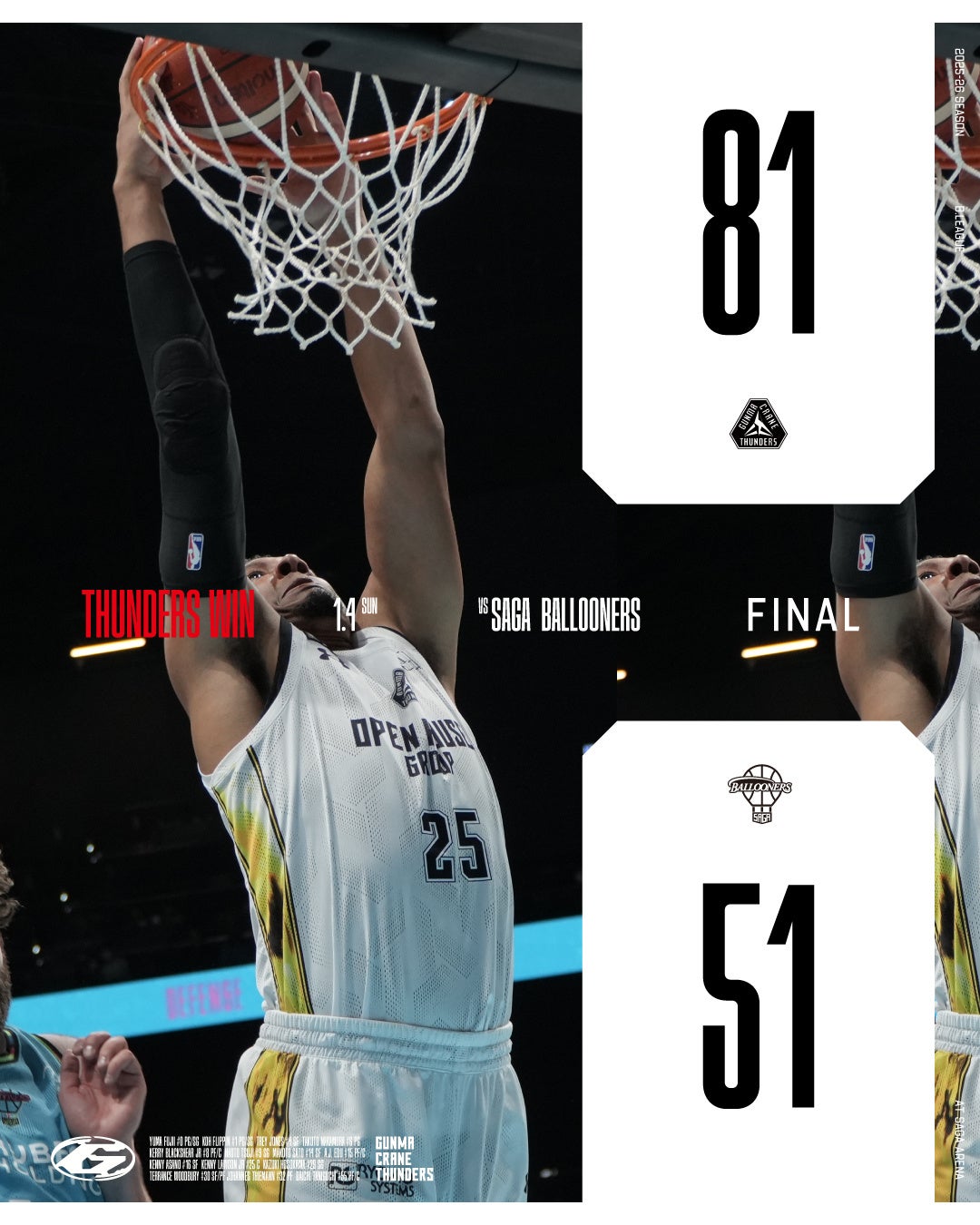 得点面ではウッドベリーに加え、ケリー・ブラックシアー・ジュニアが10得点6リバウンド4アシスト、淺野ケニーが9得点6リバウンド。エージェー・エドゥは4得点ながら9リバウンド、2ブロックでゴール下を支えました。