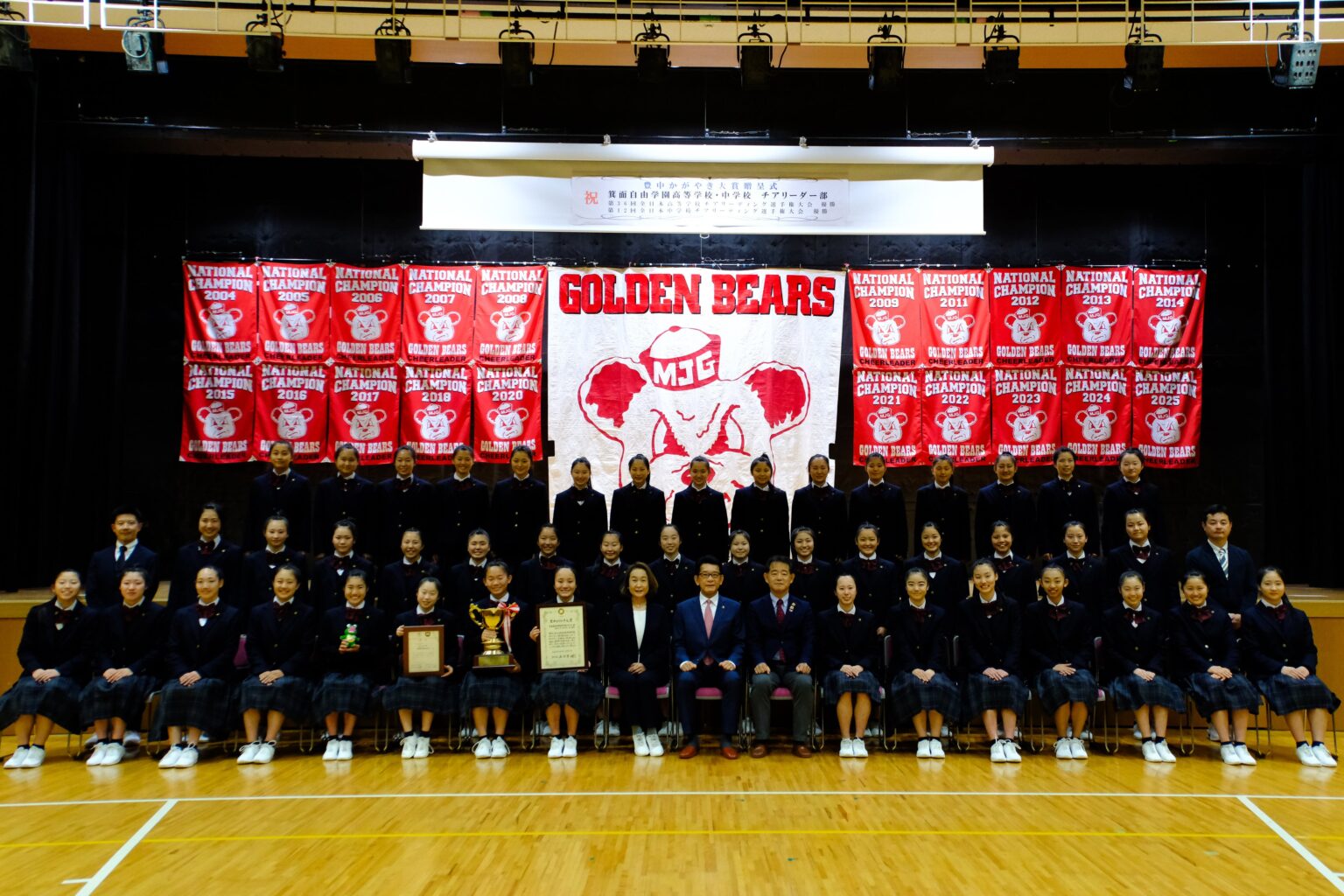 両部は令和8年1月24日、25日に国立代々木競技場第一体育館で開かれた全国大会で優勝しました。高校部は「第36回全日本高等学校チアリーディング選手権大会」の自由演技競技DIVISION1で総合優勝、中学部は同日開催の「第12回全日本中学校チアリーディング選手権大会」自由演技競技で優勝しています。