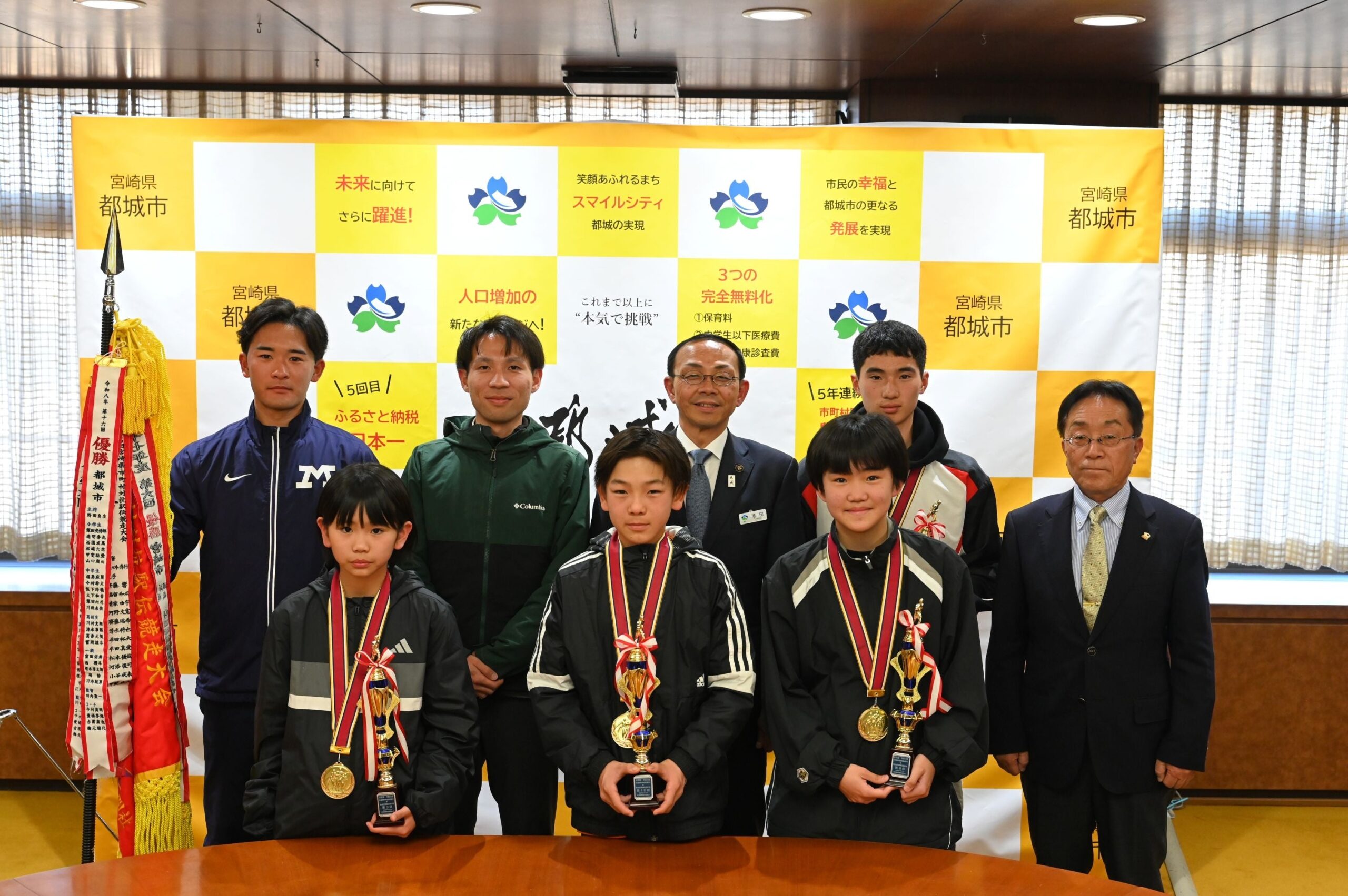宮崎県都城市の代表チームは、ひなた宮崎県総合運動公園で開かれた第16回宮崎県市町村対抗駅伝競走大会の市郡の部で優勝し、二連覇を達成しました。レースは12区間・総距離33.46kmをたすきでつなぎました。