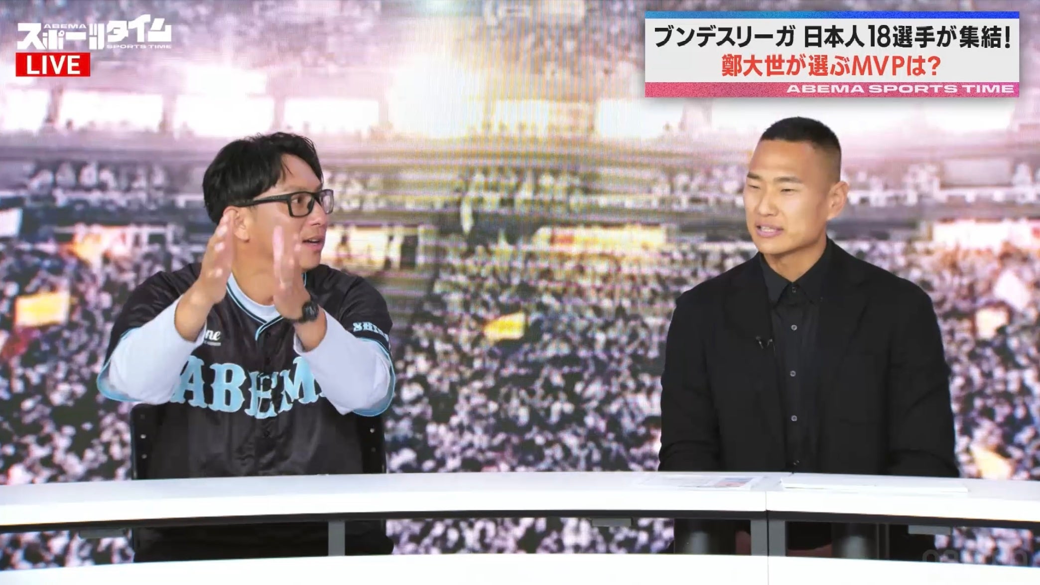 ABEMAのスポーツ番組『ABEMAスポーツタイム』#123が2026年2月15日夜10時~10時30分に放送され、鄭大世がブンデスリーガでの日本人選手の評価、いわゆる「日本人ブランド」について言及しました。番組内では、ブンデスリーガで活躍する日本人選手が18人いることも紹介しました。