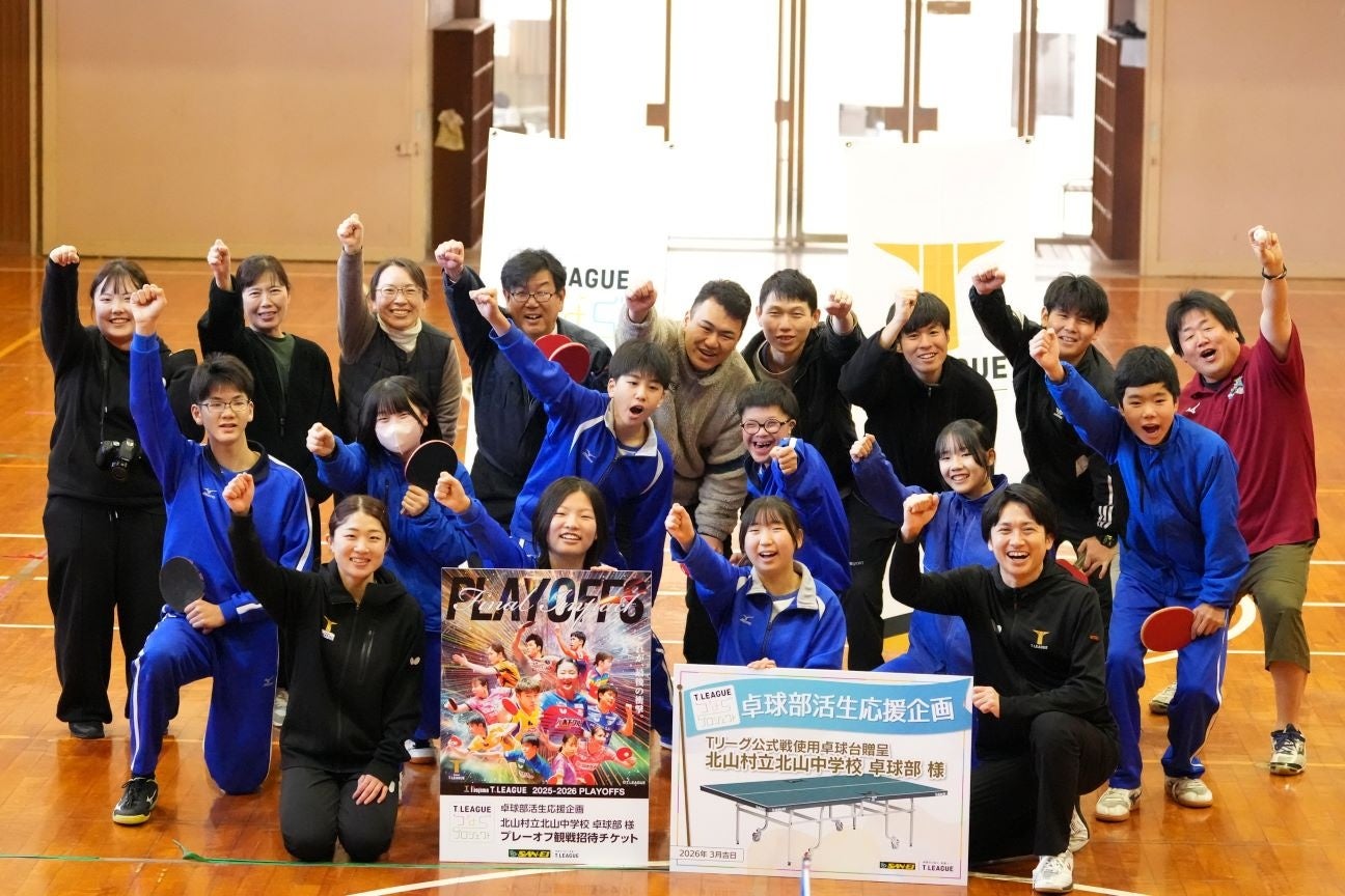 Tリーグは3月19日、ノジマTリーグ2025-2026シーズンで使用した卓球台の天板をリサイクルし、新たに脚を付けた卓球台1台の寄贈先を、和歌山県北山村立北山中学校に決めたと明らかにしました。