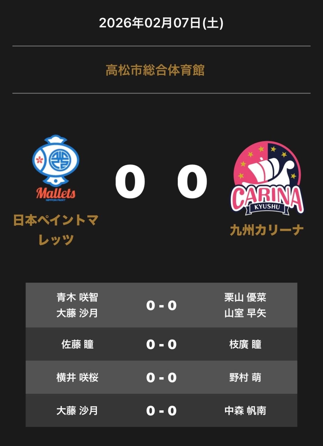Tリーグは2026年2月7日13時33分、日本ペイントマレッツと九州カリーナが対戦するノジマTリーグ2025-2026シーズン公式戦(2月7日開催)の対戦オーダーを発表しました。視聴者向けにYouTubeでの生配信も案内しています。